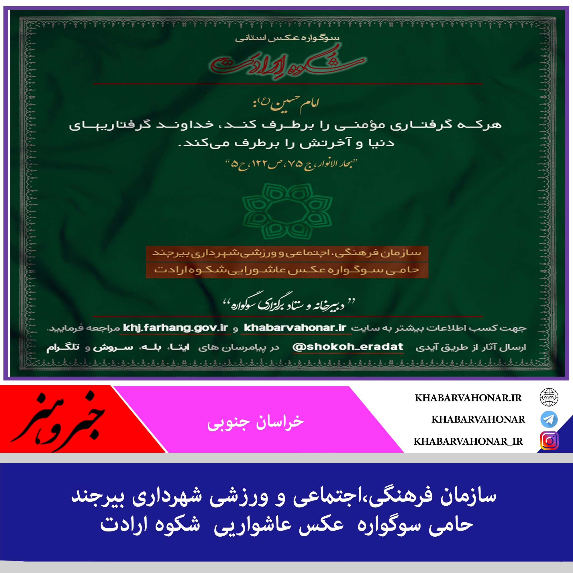 سازمان فرهنگی،اجتماعی و ورزشی شهرداری بیرجند حامی سوگواره عکس عاشواریی شکوه ارادت