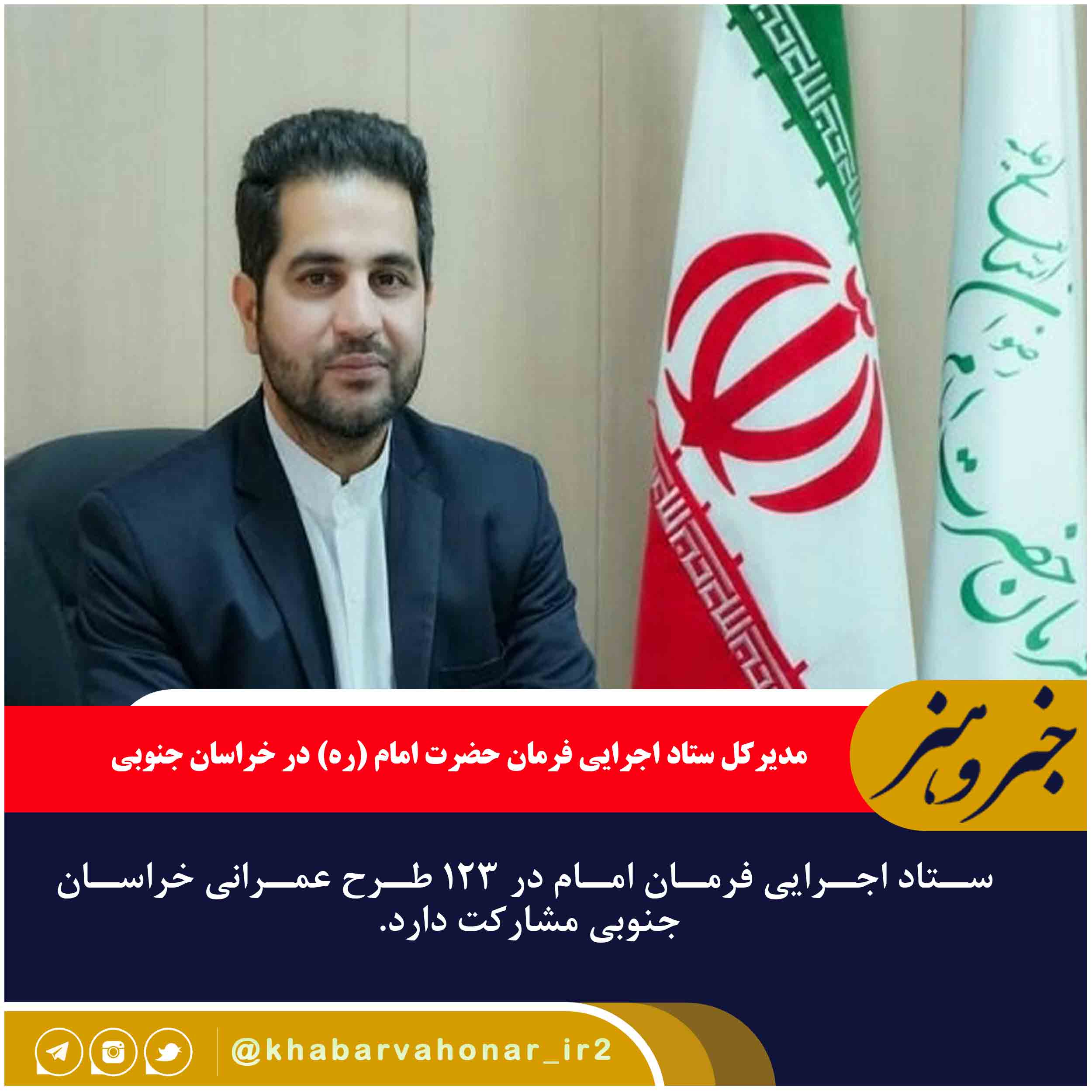 مدیرکل ستاد اجرایی فرمان حضرت امام (ره) در خراسان جنوبی گفت: این ستاد در اجرای ۱۲۳ طرح عمرانی و زیربنایی استان با اعتبار ۱۱۴ میلیارد تومان مشارکت دارد.