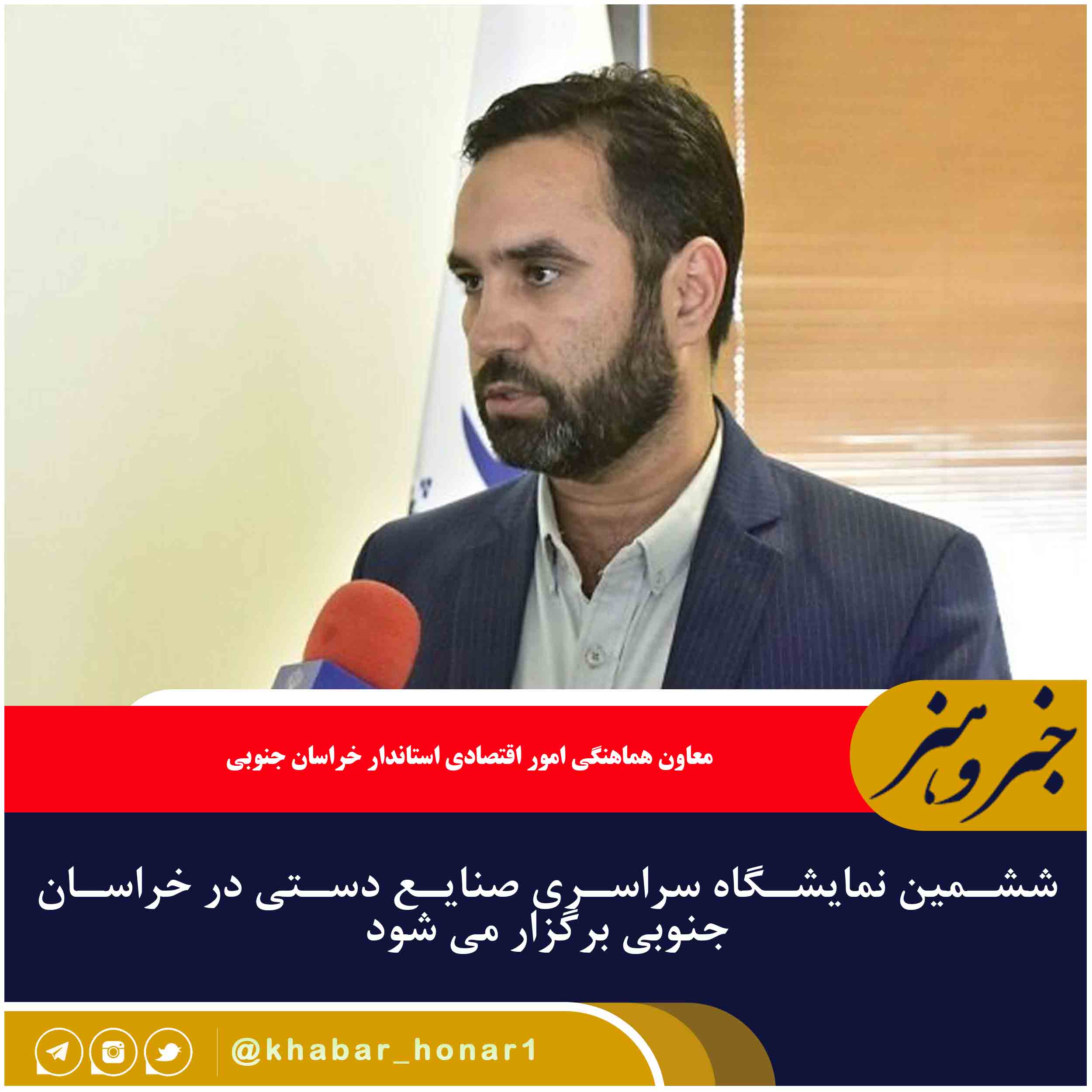 معاون هماهنگی امور اقتصادی استاندار خراسان جنوبی گفت: ششمین نمایشگاه سراسری صنایع دستی با حضور صنعتگران ۲۶ استان در خراسان جنوبی برگزار می شود.