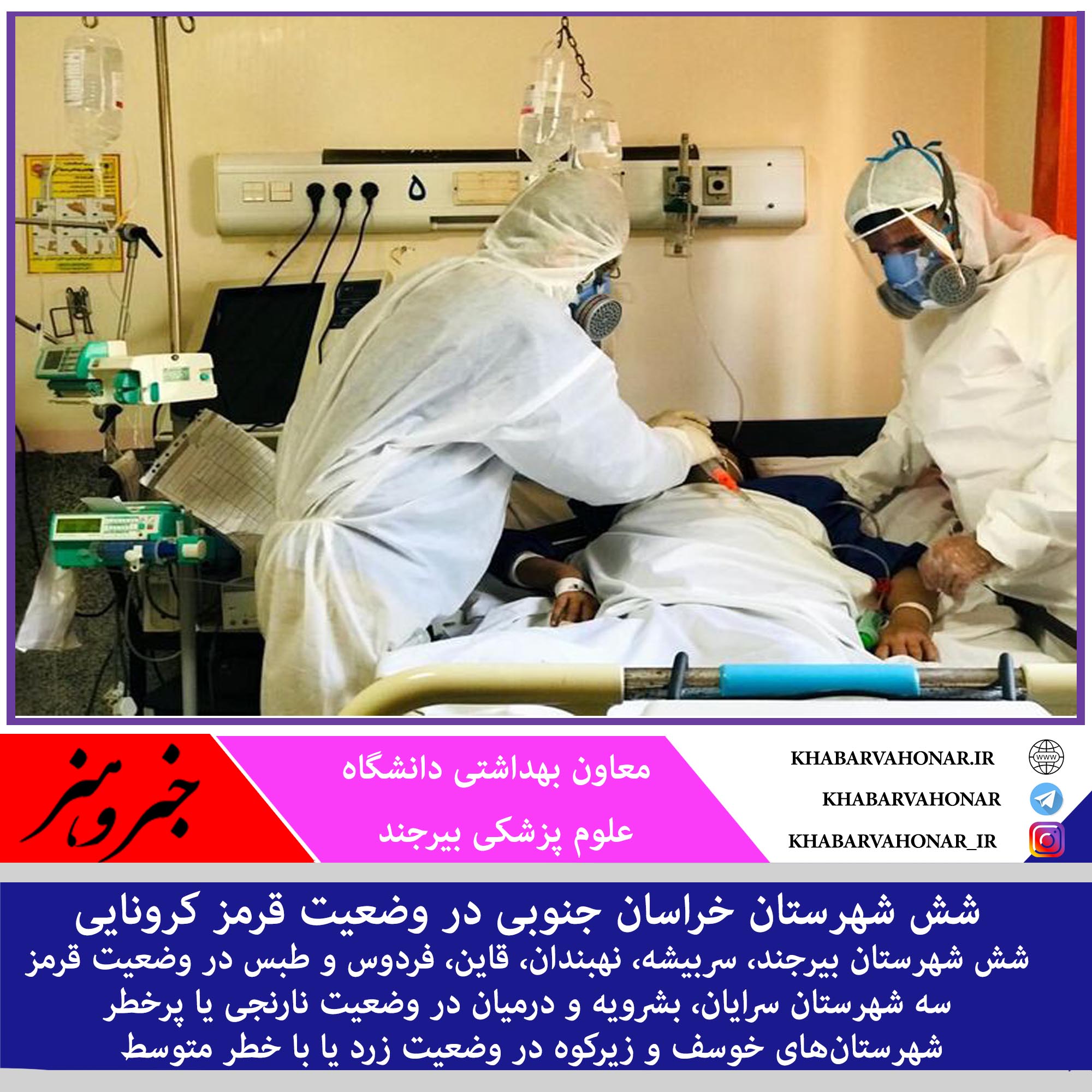 شش شهرستان خراسان جنوبی بر اساس آخرین آمار اعلام شده از وزارت بهداشت در وضعیت قرمز قرار دارند.