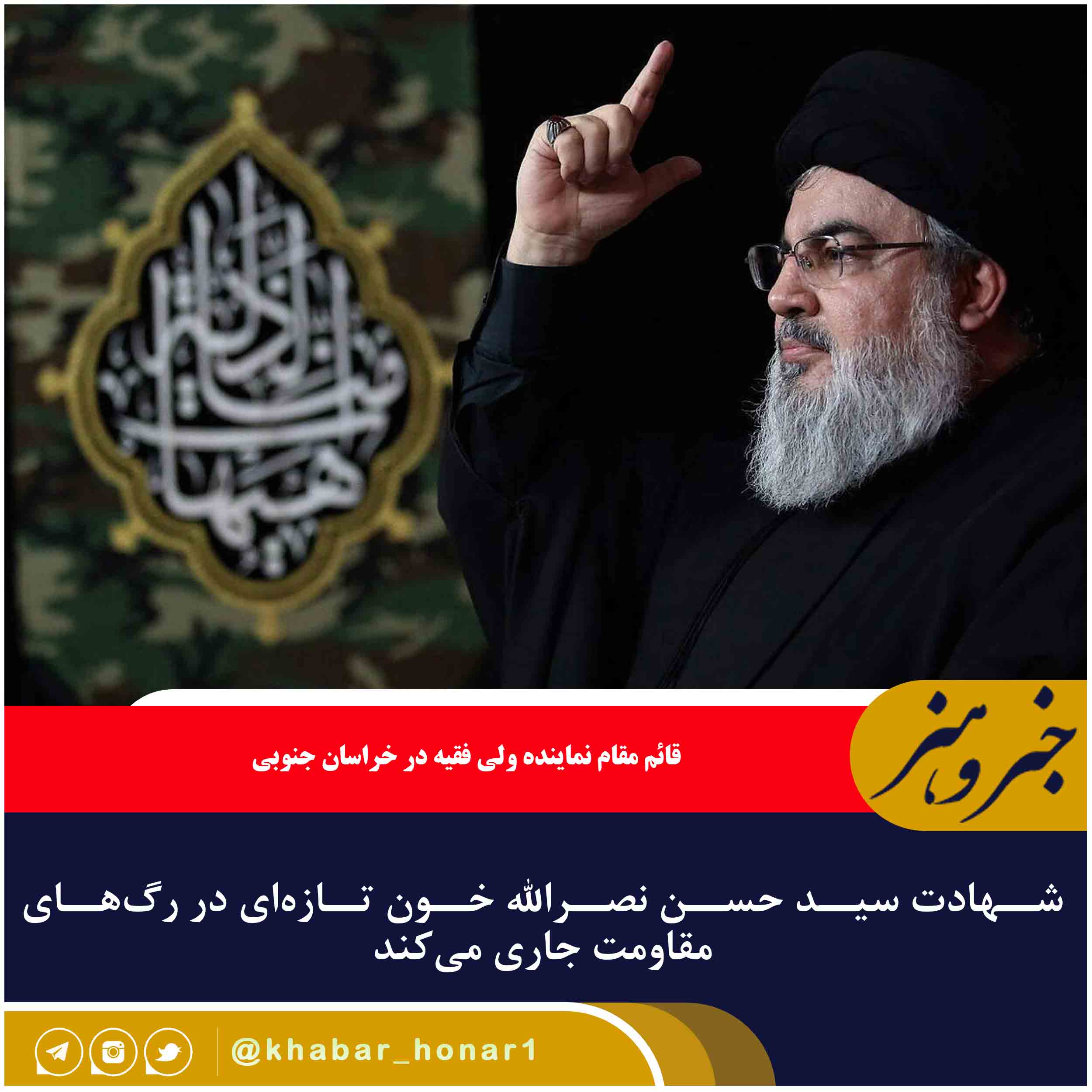قائم مقام نماینده ولی فقیه در خراسان جنوبی گفت: شهادت سید حسن نصرالله خون تازهای در رگهای جبهه مقاومت، رزمندگان جان برکف این جبهه، جوامع اسلامی و حتی جوامع بشریت جاری خواهد کرد.
