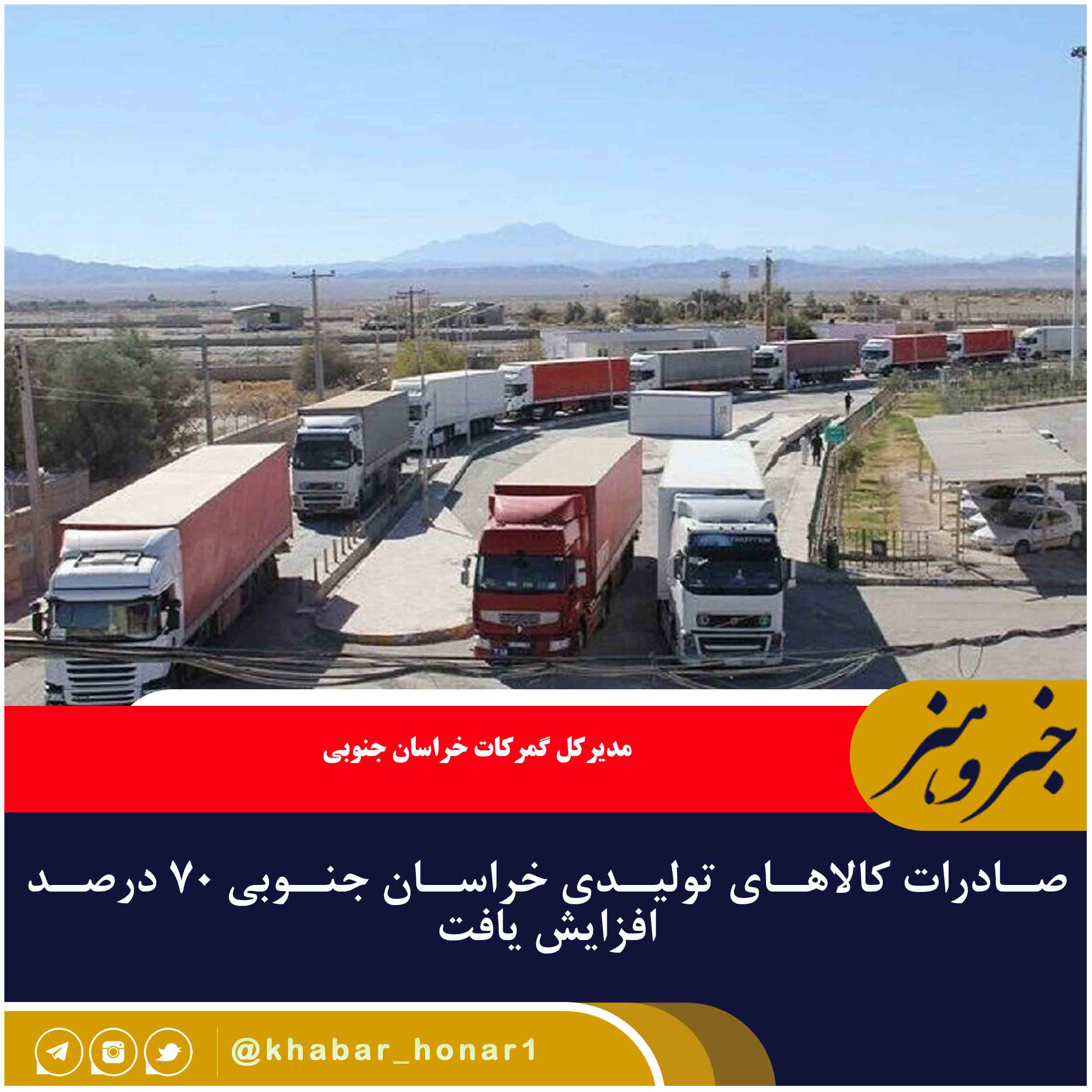 مدیرکل گمرکات خراسان جنوبی درباره کل صادرات کالاهای خروجی از گمرکات خراسان جنوبی در سال گذشته گفت: در این مدت ۲ میلیون و ۳۵۴ هزار و ۶۷۴ تن کالا به ارزش ۶۷۱ میلیون و ۲۷۲ هزار و ۶۱۶ دلار کل کالاهای صادراتی خروجی استان بوده که نسبت به مدت مشابه سال قبل از نظر ارزش ۴۲ درصد و از نظر وزن ۵۰ درصد افزایش یافته است.
