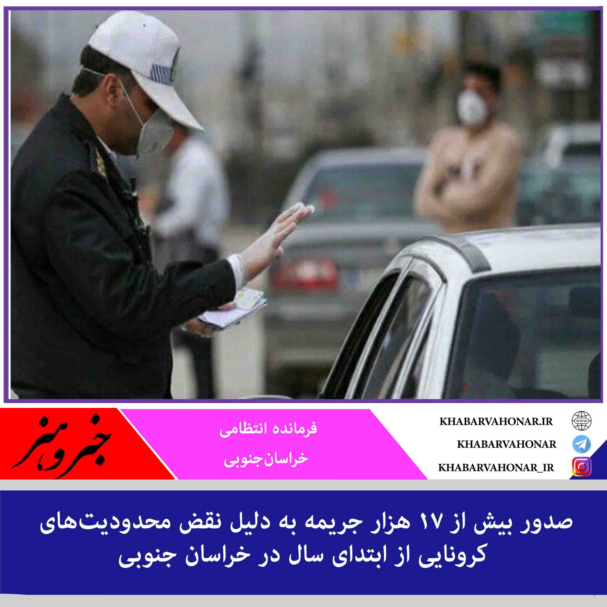 صدور بیش از ۱۷ هزار جریمه به دلیل نقض محدودیت‌های کرونایی از ابتدای سال در خراسان جنوبی