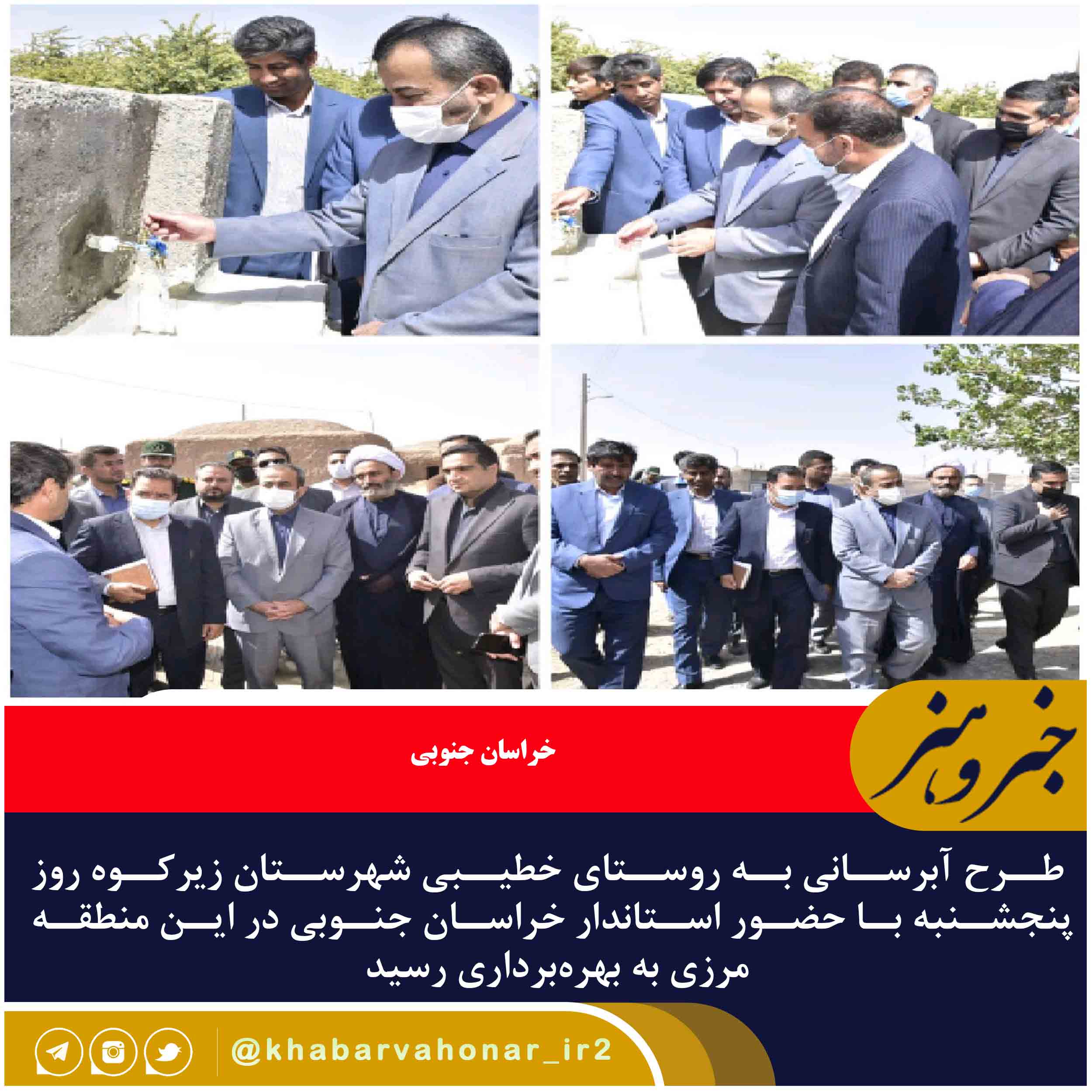 طرح آبرسانی به روستای خطیبی شهرستان زیرکوه روز پنجشنبه با حضور استاندار خراسان جنوبی در این منطقه مرزی به بهره‌برداری رسید.