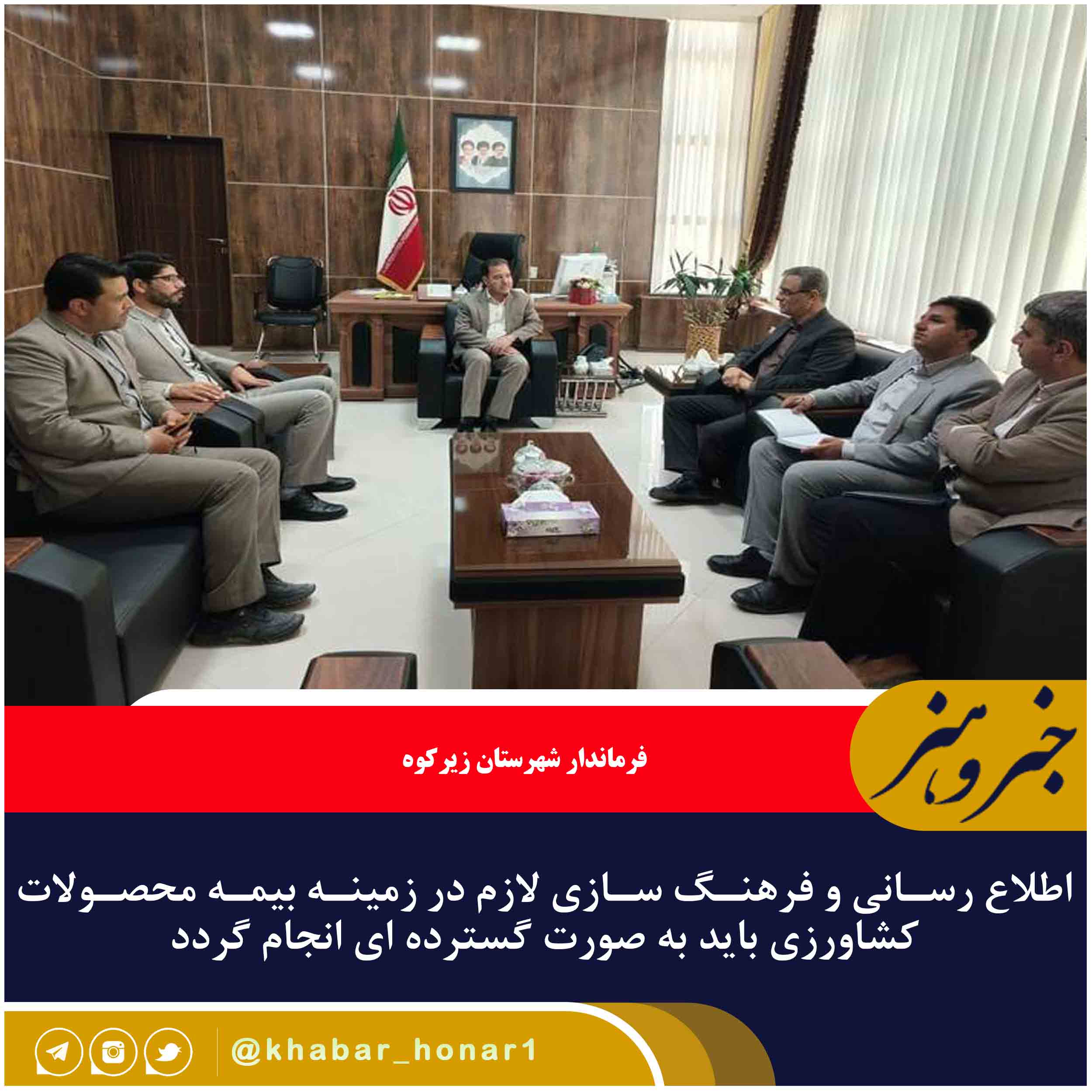 ?فرماندار گفت: اطلاع رسانی و فرهنگ سازی لازم در زمینه بیمه محصولات کشاورزی باید به صورت گسترده ای انجام گردد.