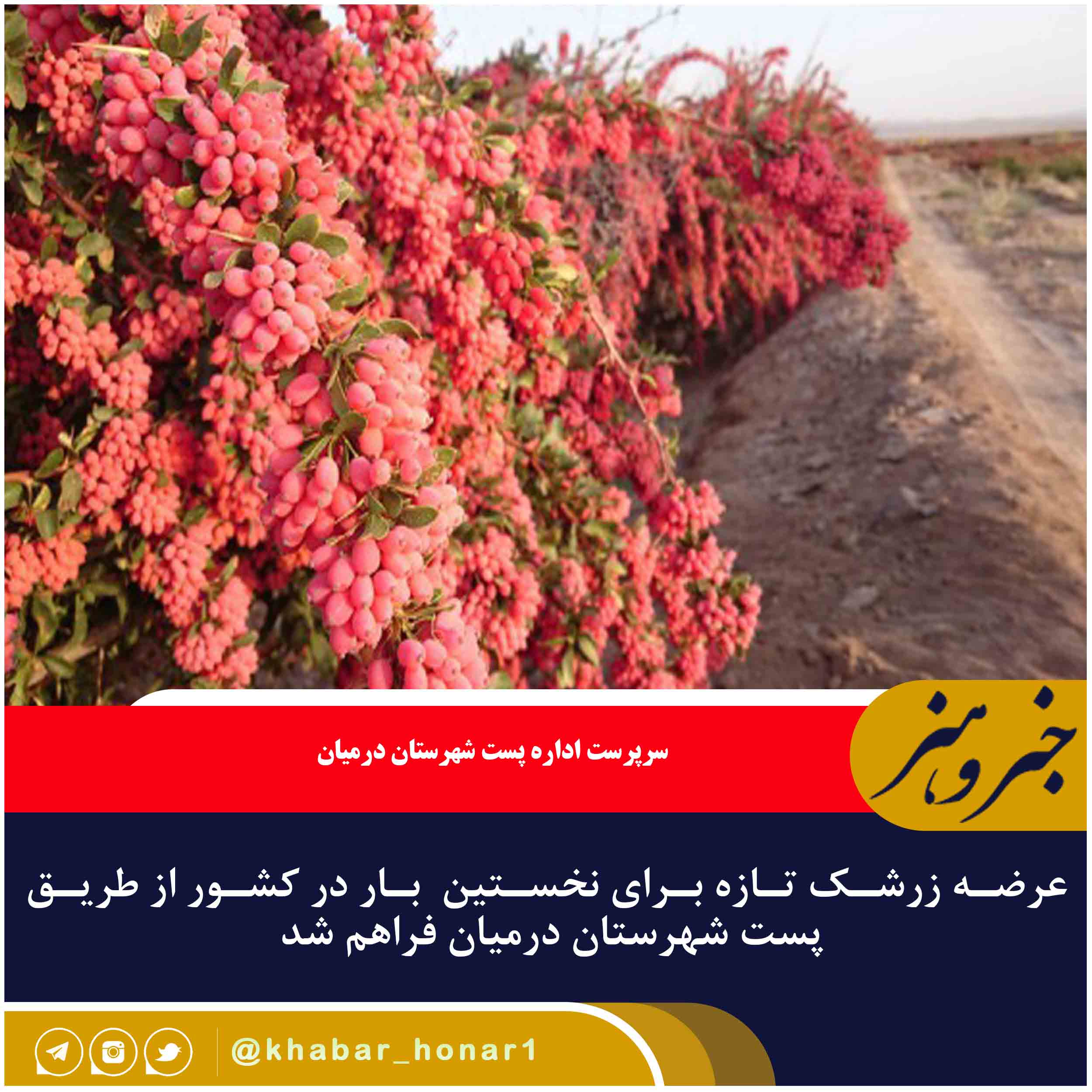 سرپرست اداره پست شهرستان درمیان گفت: برای نخستین بار در شرق کشور امکان عرضه محصول زرشک تازه از طریق سرویس پست ویژه در این شهرستان فراهم شد.