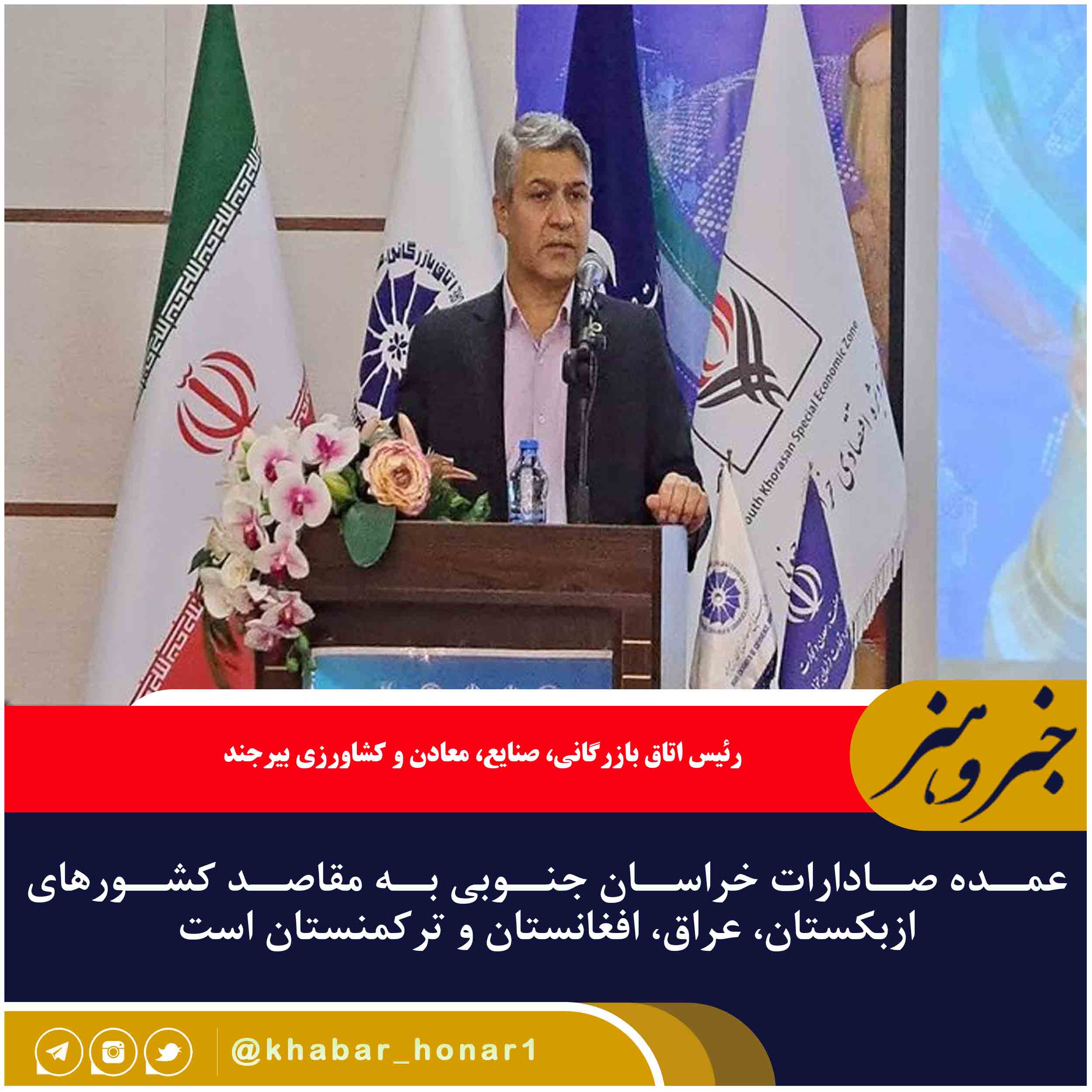 رئیس اتاق بازرگانی، صنایع، معادن و کشاورزی بیرجند اظهار کرد: عمده کالاها اعم از سیمان، کاشی و سرامیک، تخممرغ و مواد غذایی به مقاصد کشورهای ازبکستان، عراق، افغانستان و ترکمنستان صادر میشود.