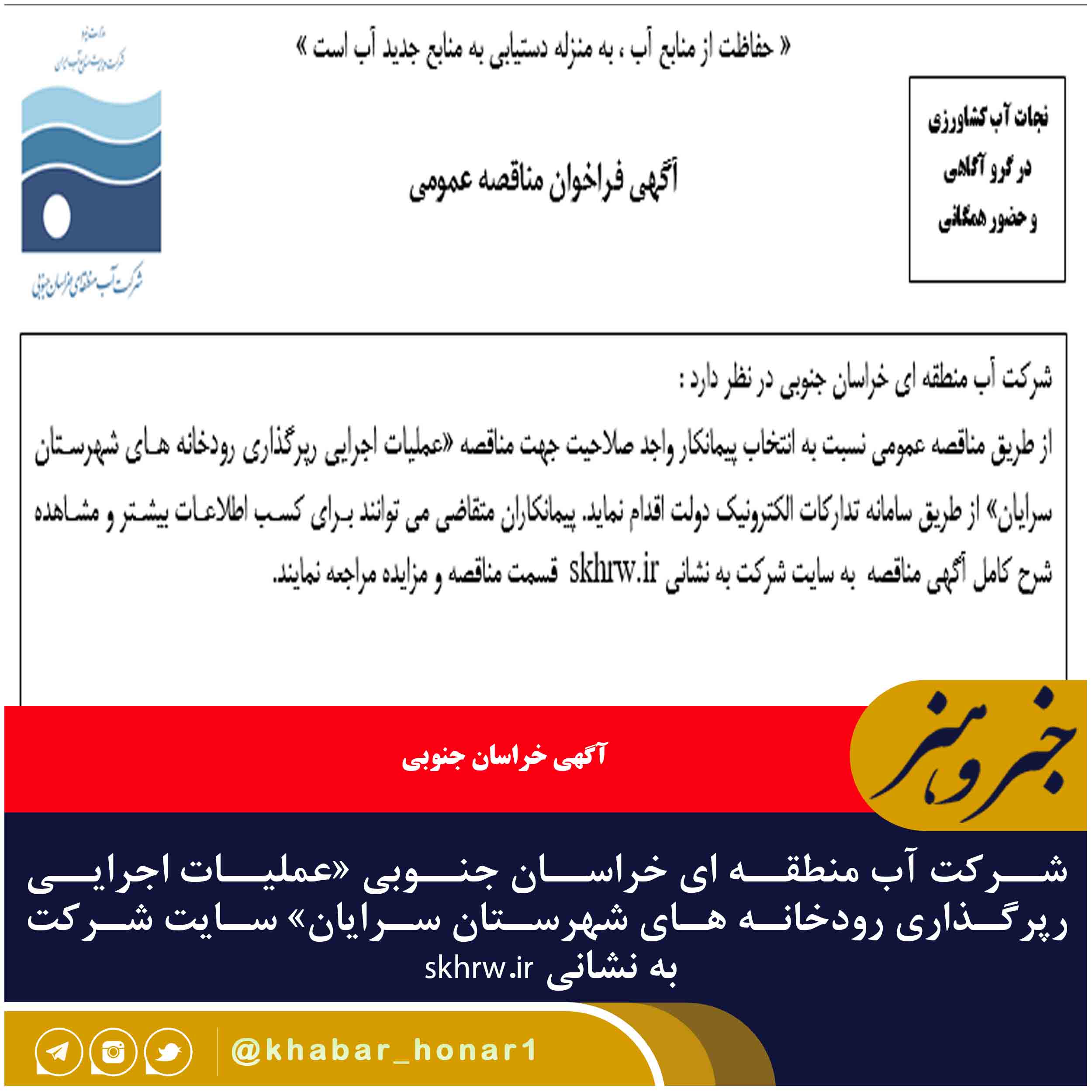 شرکت آب منطقه ای خراسان جنوبی در نظر دارد :