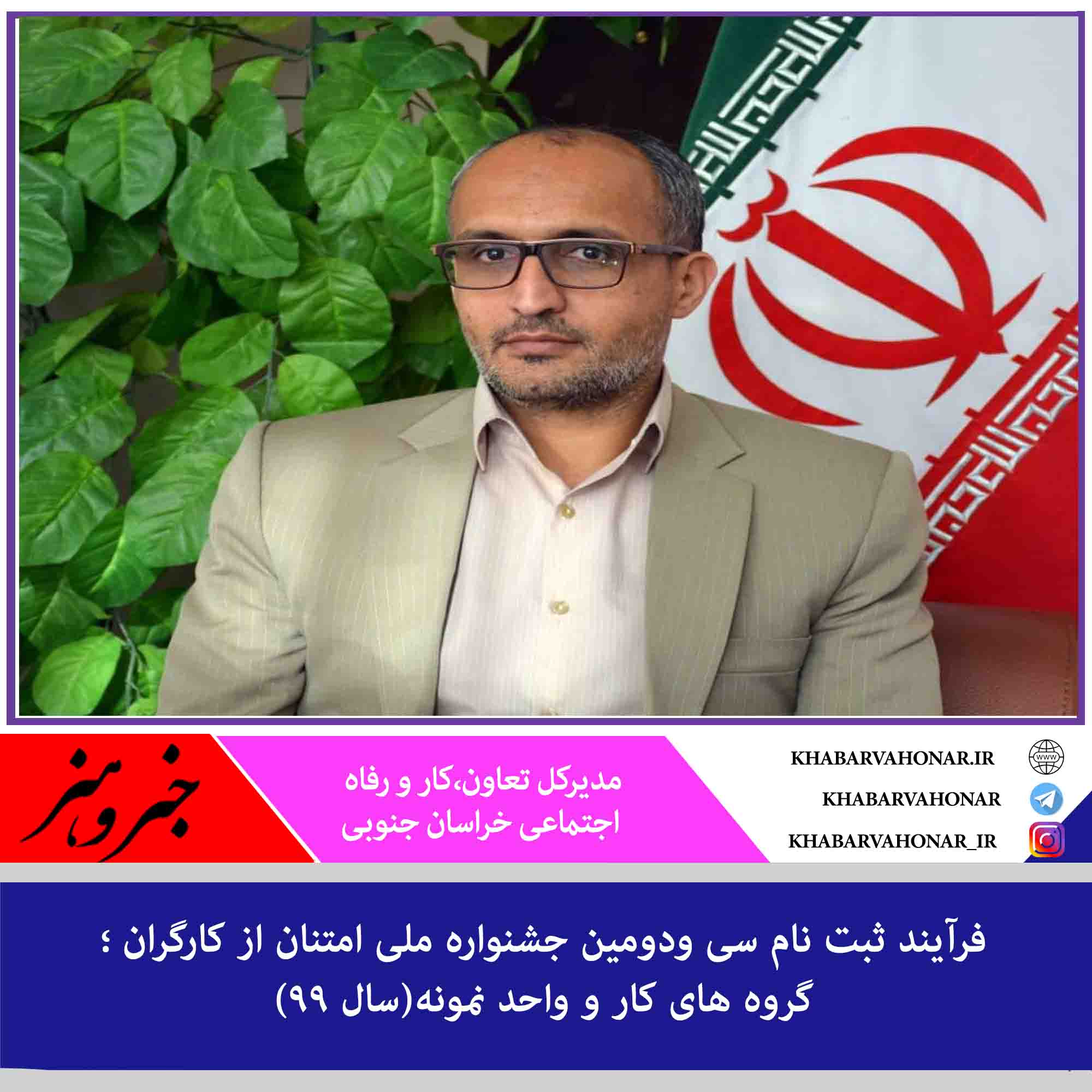 مدیرکل تعاون،کار و رفاه اجتماعی خراسان جنوبی در تشریح این خبر گفت: فرآیند ثبت نام سی ودومین جشنواره ملی امتنان از کارگران ؛ گروه های کار و واحد نمونه(سال ۹۹) در سه بخش صنعت ، کشاورزی و خدمات آغاز شده است.