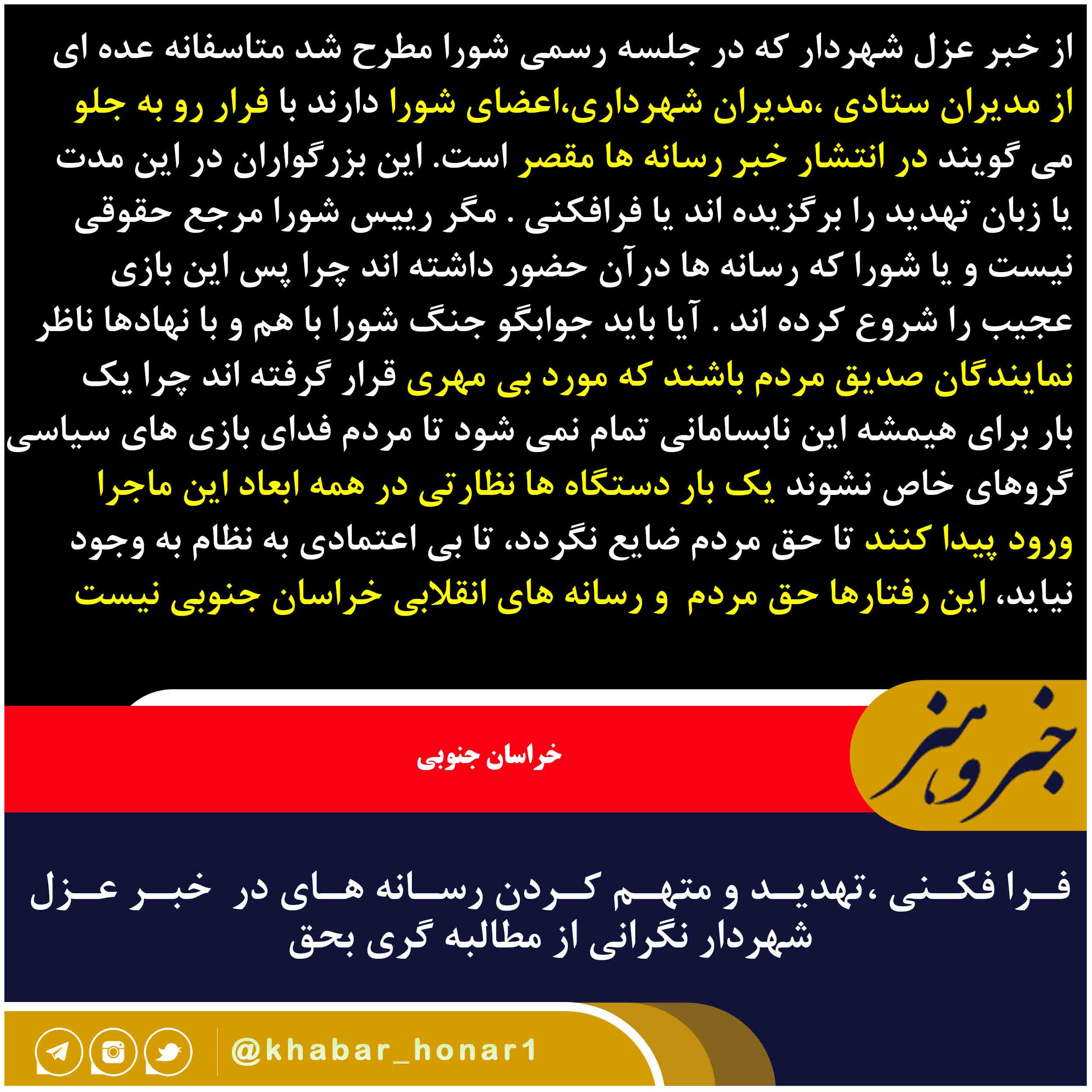 فرا فکنی ،تهدید و متهم کردن رسانه های در خبر عزل شهردار نگرانی از مطالبه گری بحق