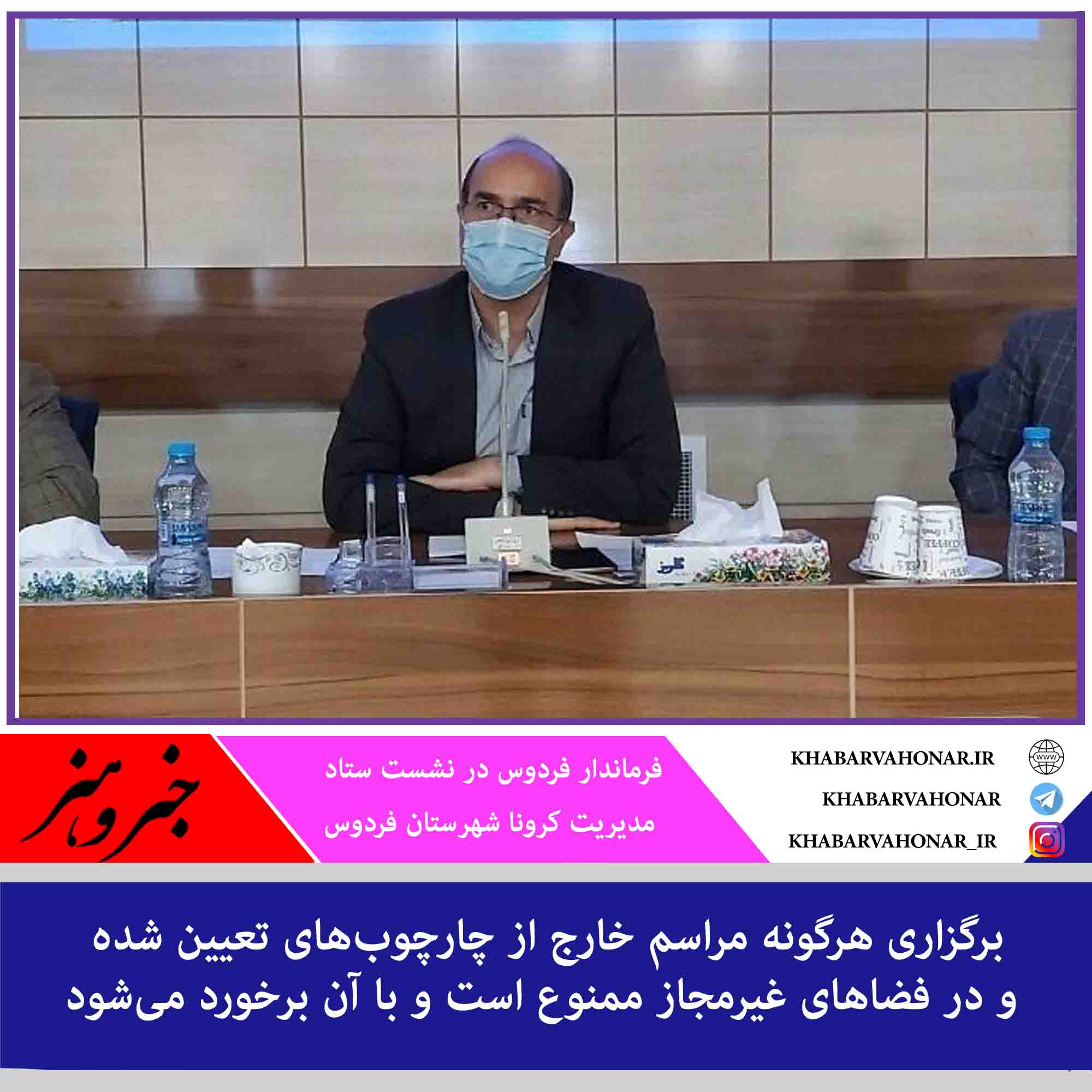 فرماندار فردوس گفت: برگزاری هرگونه مراسم خارج از چارچوبهای تعیین شده و در فضاهای غیرمجاز ممنوع است و با آن برخورد میشود.