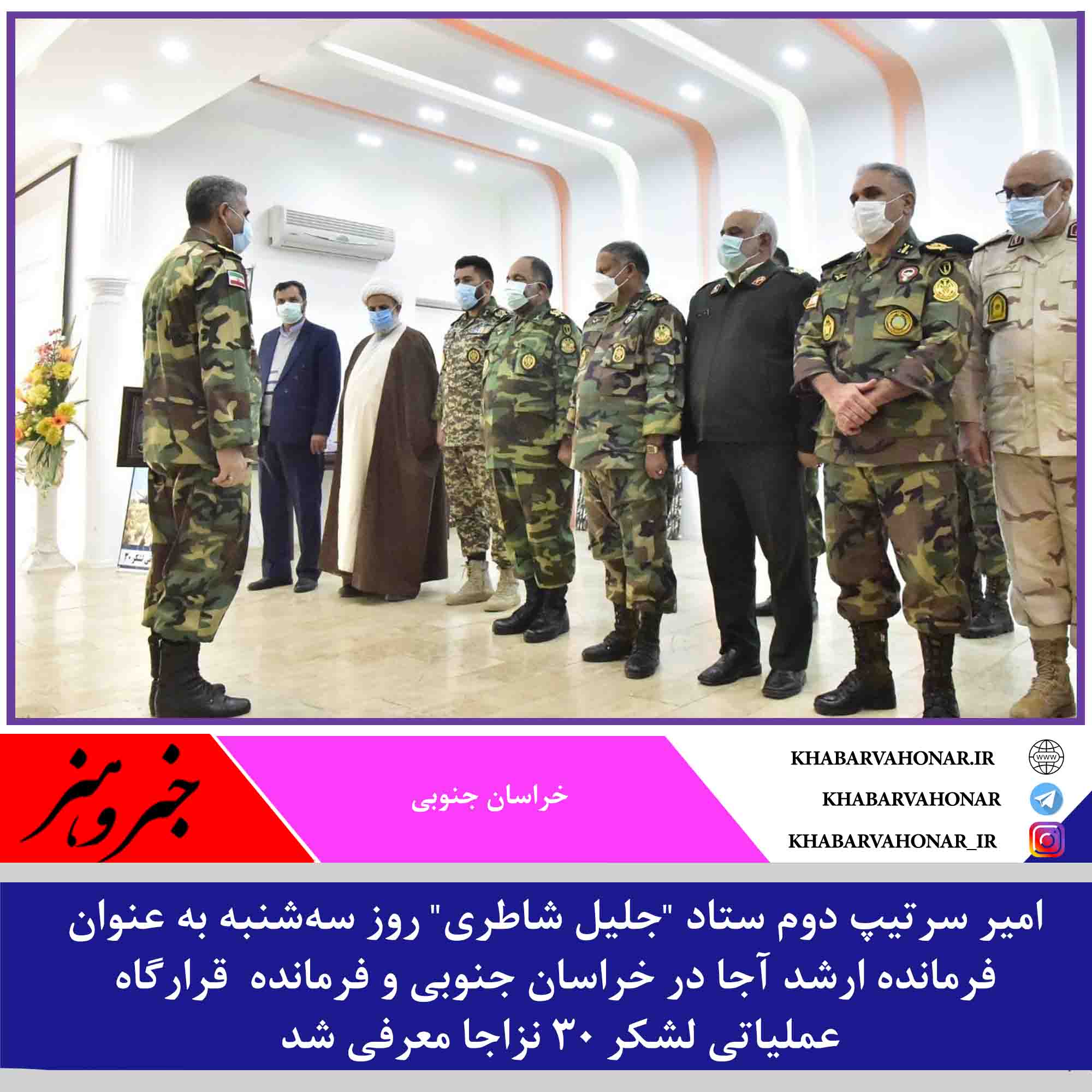 امیر سرتیپ دوم ستاد “جلیل شاطری” روز سهشنبه به عنوان فرمانده ارشد آجا در خراسان جنوبی و فرمانده قرارگاه عملیاتی لشکر ۳۰ نزاجا معرفی شد.