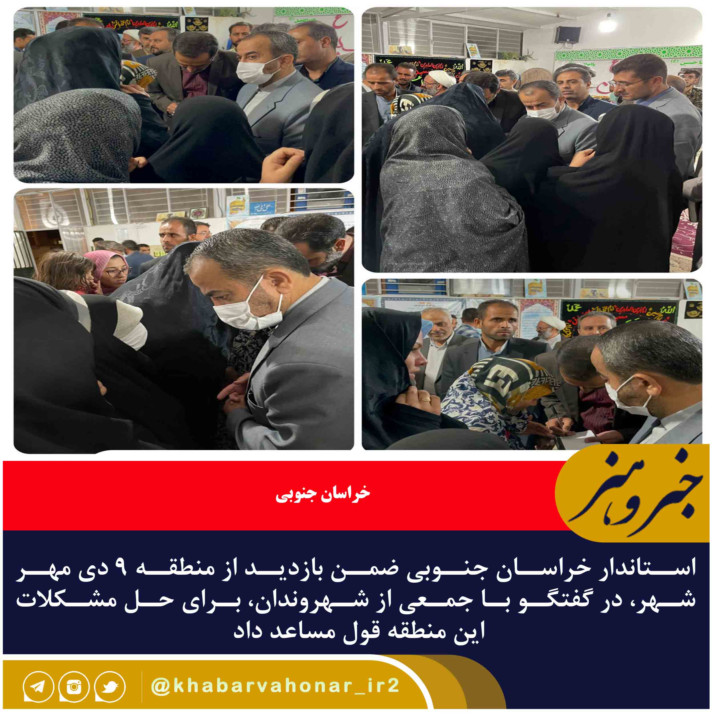 استاندار خراسان جنوبی ضمن بازدید از منطقه ۹ دی مهر شهر، در گفتگو با جمعی از شهروندان، برای حل مشکلات این منطقه قول مساعد داد.