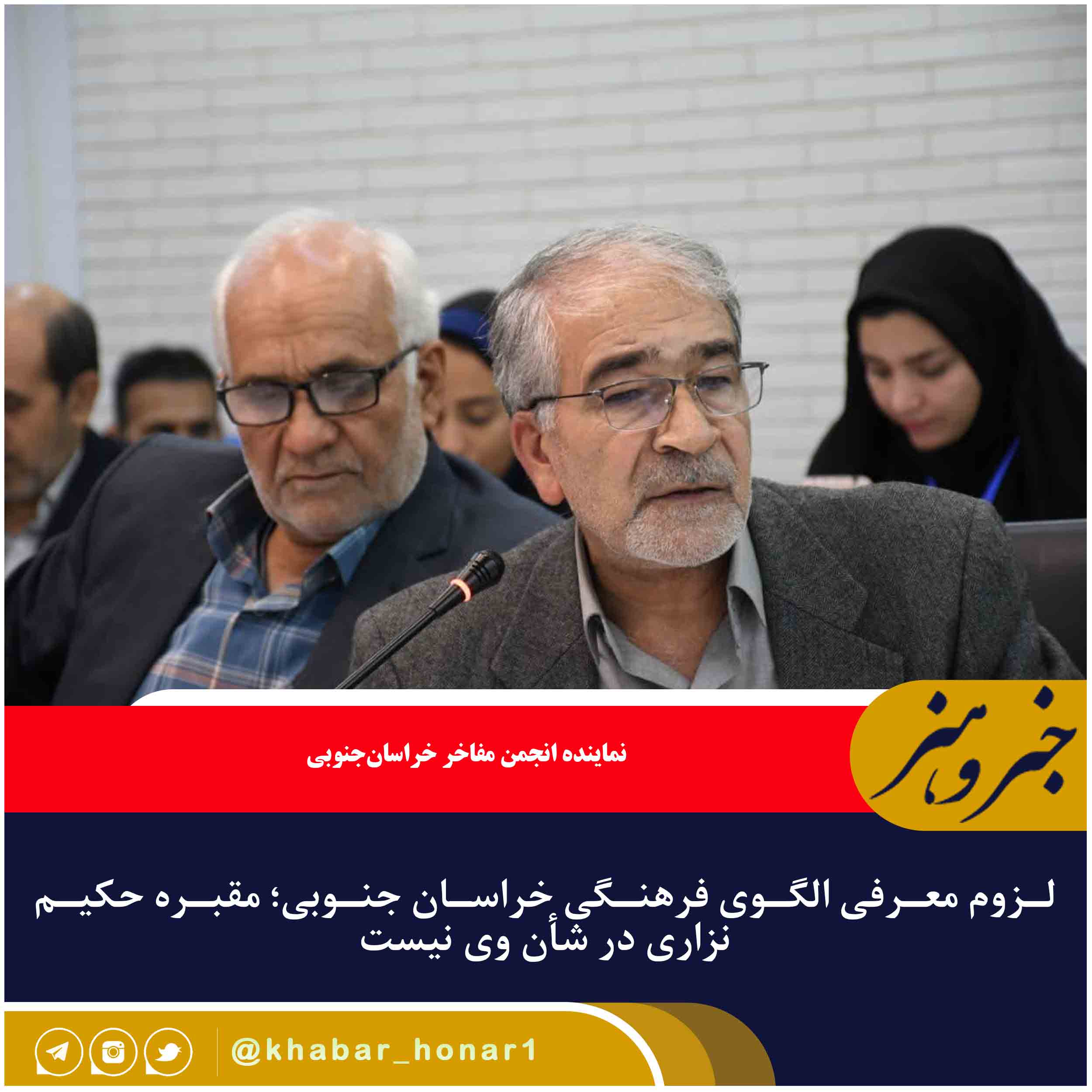 ? نماینده انجمن مفاخر خراسانجنوبی، گفت: «عظمت کار انجمن مفاخر برگزاری بزرگداشت نیست بلکه باید تلاش کنیم در زمینه معرفی الگوهای فرهنگی بکوشیم».