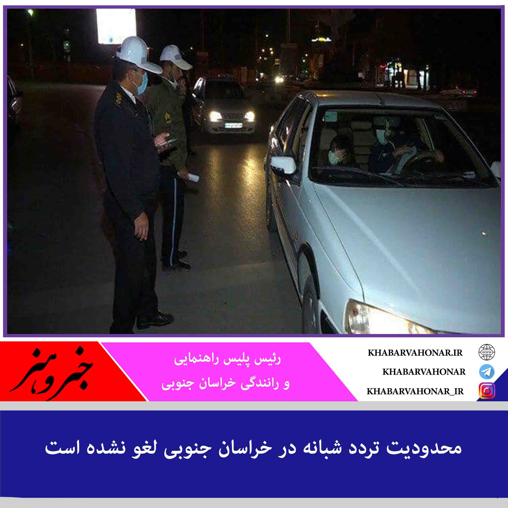? سرهنگ علیرضا عباسی رئیس پلیس راهنمایی و رانندگی خراسان جنوبی گفت: محدودیت تردد شبانه در خراسان جنوبی لغو نشده است.