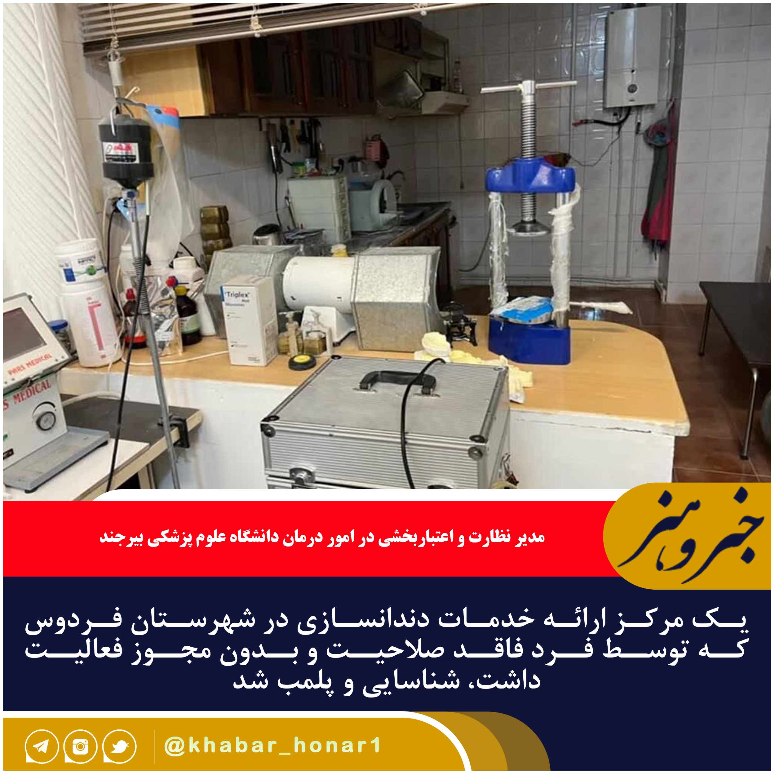 مرکز غیرمجاز دندانسازی در شهرستان فردوس پلمب شد
