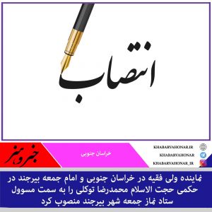 نماینده ولی فقیه در خراسان جنوبی و امام جمعه بیرجند در حکمی حجت الاسلام محمدرضا توکلی را به سمت مسوول ستاد نماز جمعه شهر بیرجند منصوب کرد.