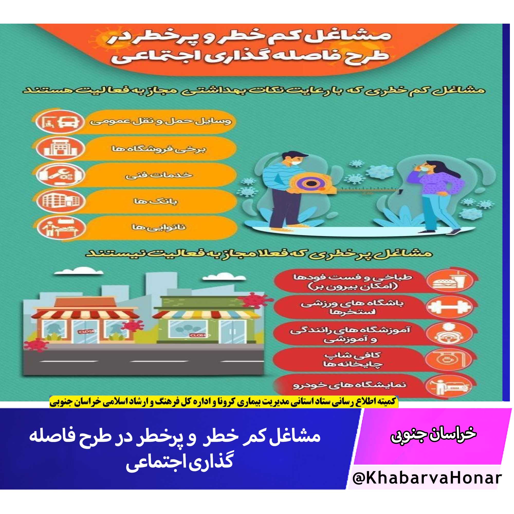 مشاغل کم خطر و پرخطر در طرح فاصله گذاری اجتماعی