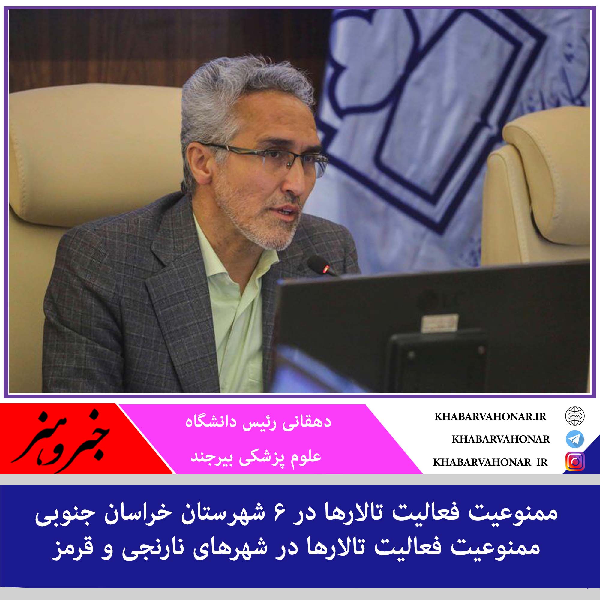 دهقانی رئیس دانشگاه علوم پزشکی بیرجند از ممنوعیت فعالیت تالارها در شهرهای نارنجی و قرمز خبر داد.