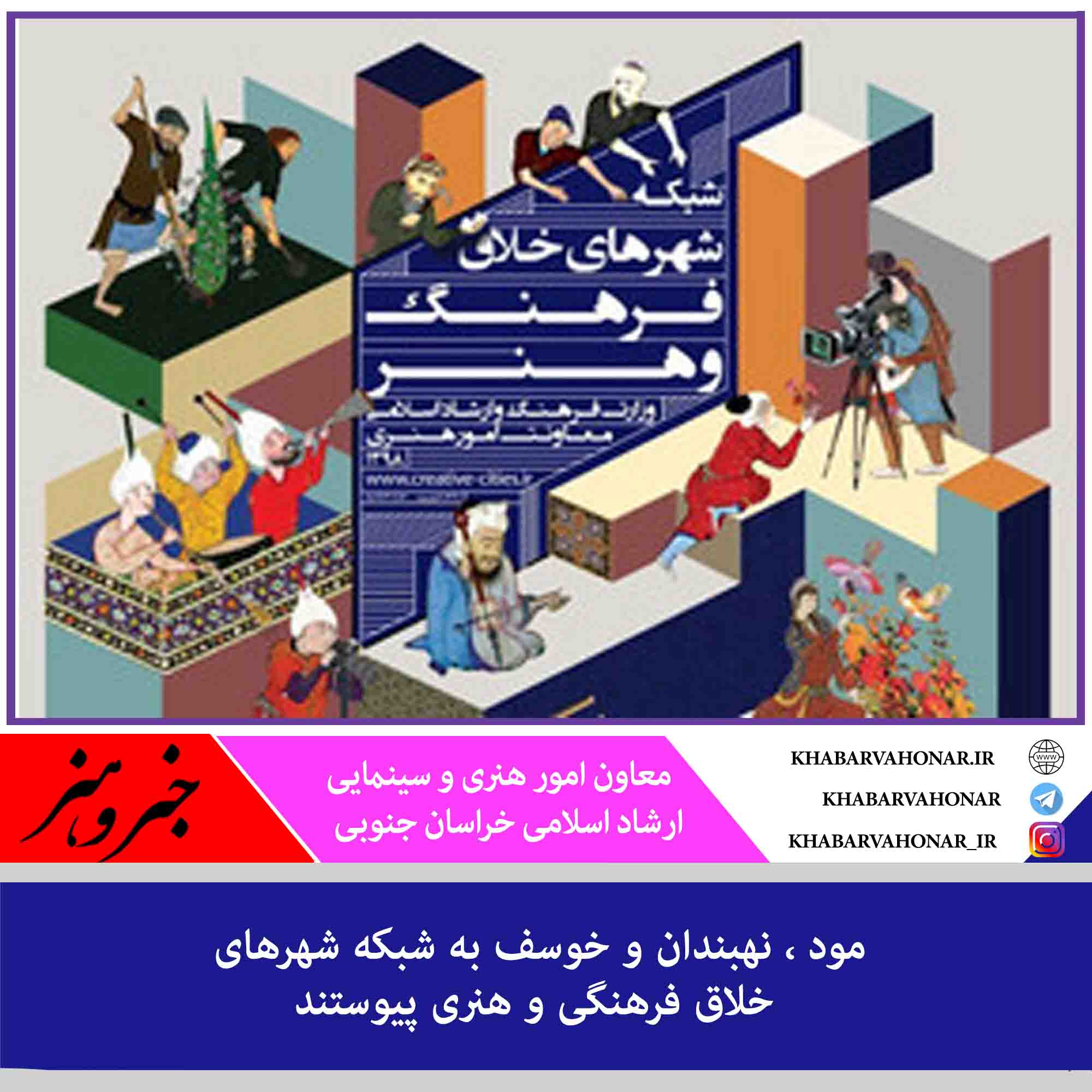 معاون امور هنری و سینمایی اداره کل فرهنگ و ارشاد اسلامی خراسان جنوبی گفت: مود ، نهبندان و خوسف به شبکه شهرهای خلاق فرهنگی و هنری پیوستند.سید علی زمزم با بیان این که داوری آثار دریافتی و انتخاب شهرهای مرحله نهایی از میان ۳۶۷ شهر مشارکت کننده در این طرح انجام گرفت، ادامه داد: پس از چند مرحله داوری ۱۲۹ شهر در ۹ حوزه موضوعی به مرحله نهایی راه یافتند.