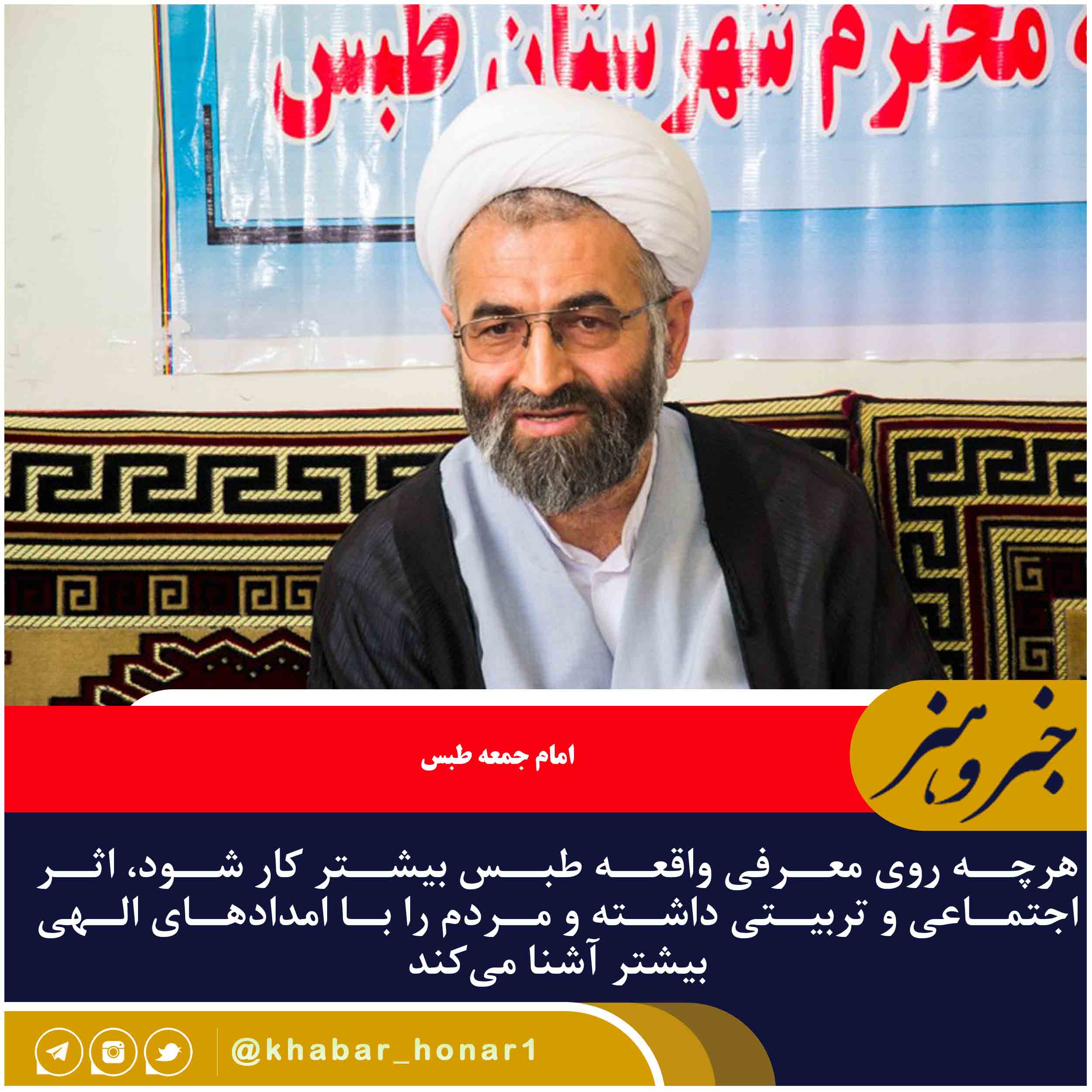 ?امام جمعه طبس گفت: هرچه روی معرفی واقعه طبس بیشتر کار شود، اثر اجتماعی و تربیتی داشته و مردم را با امدادهای الهی بیشتر آشنا می‌کند.