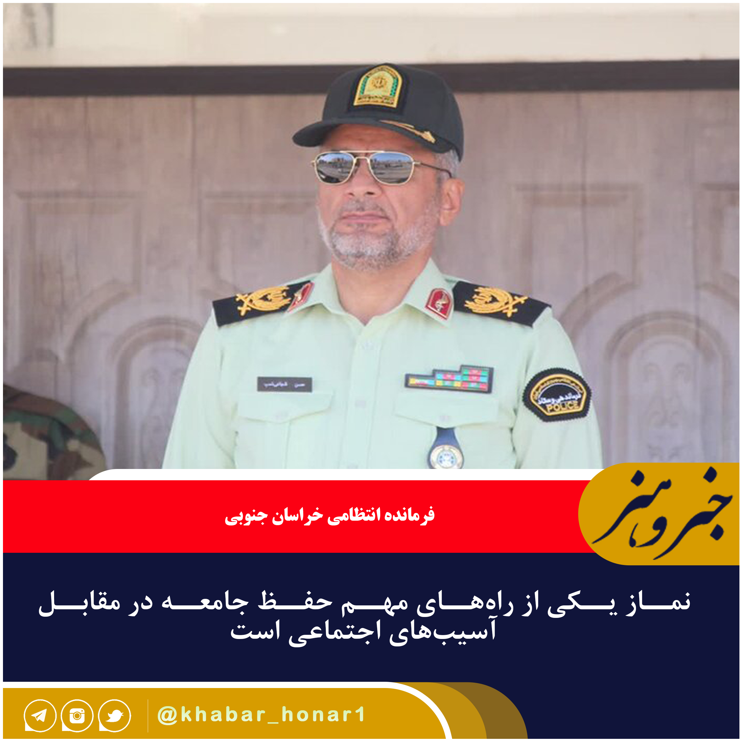 فرمانده انتظامی خراسان جنوبی گفت: نماز یکی از راههای مهم حفظ جامعه در مقابل آسیبهای اجتماعی است.