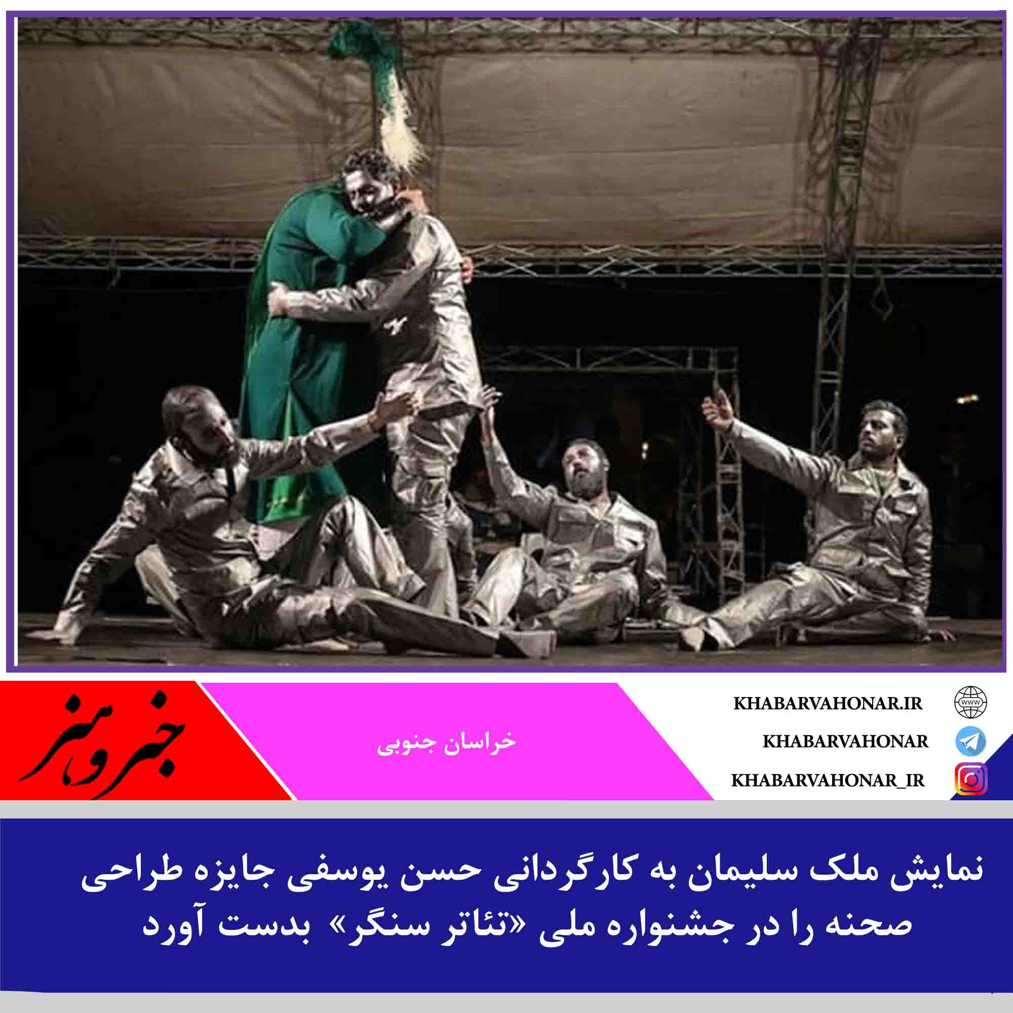 نمایش ملک سلیمان به کارگردانی حسن یوسفی جایزه طراحی صحنه را در جشنواره ملی «تئاتر سنگر» بدست آورد