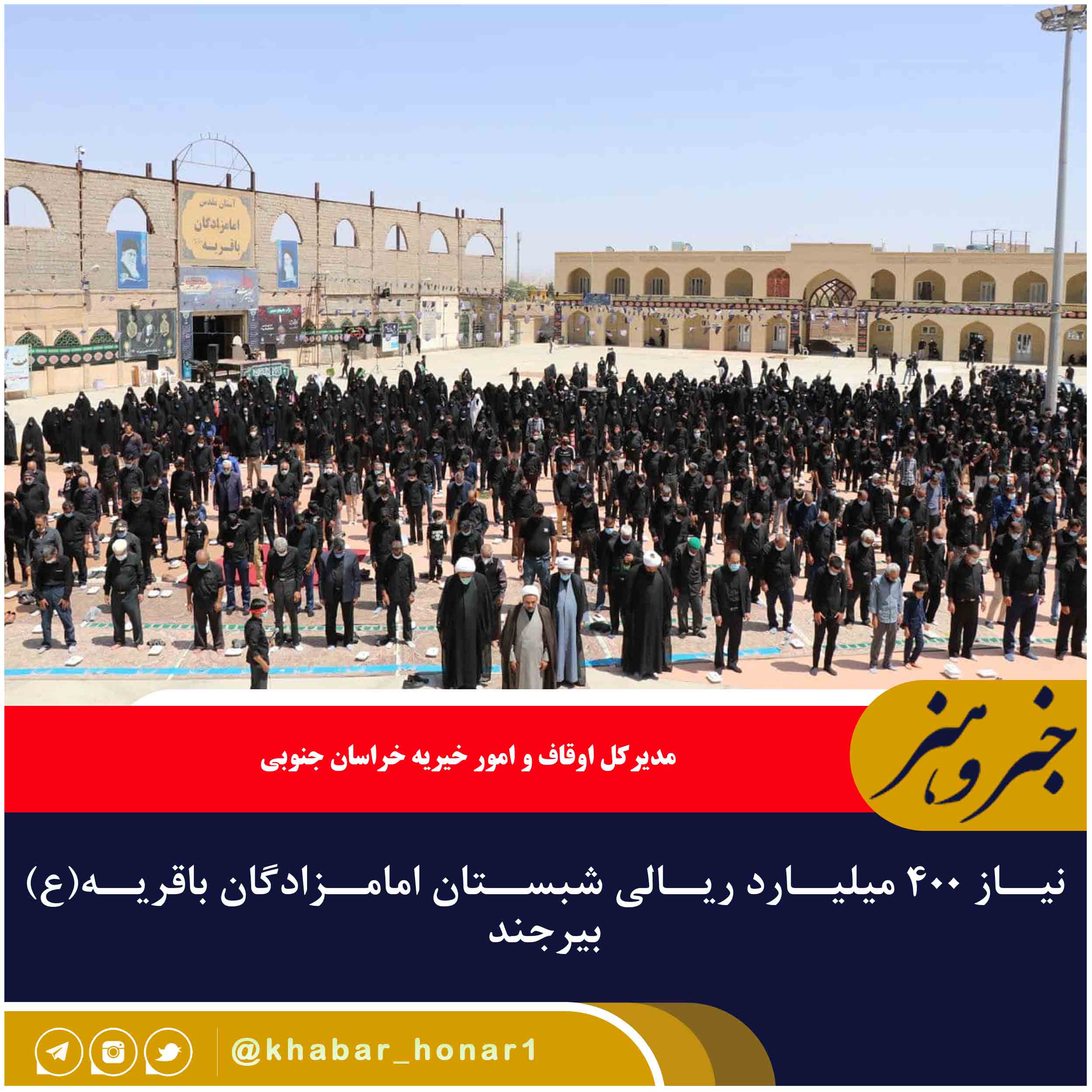مدیرکل اوقاف و امور خیریه خراسان جنوبی گفت: احداث ساختمان شبستان آستان مقدس امامزادگان باقریه(ع) بیرجند با متراژ چهار هزار مترمربع به اعتباری بالغ بر ۴۰۰ میلیارد ریال نیاز دارد.