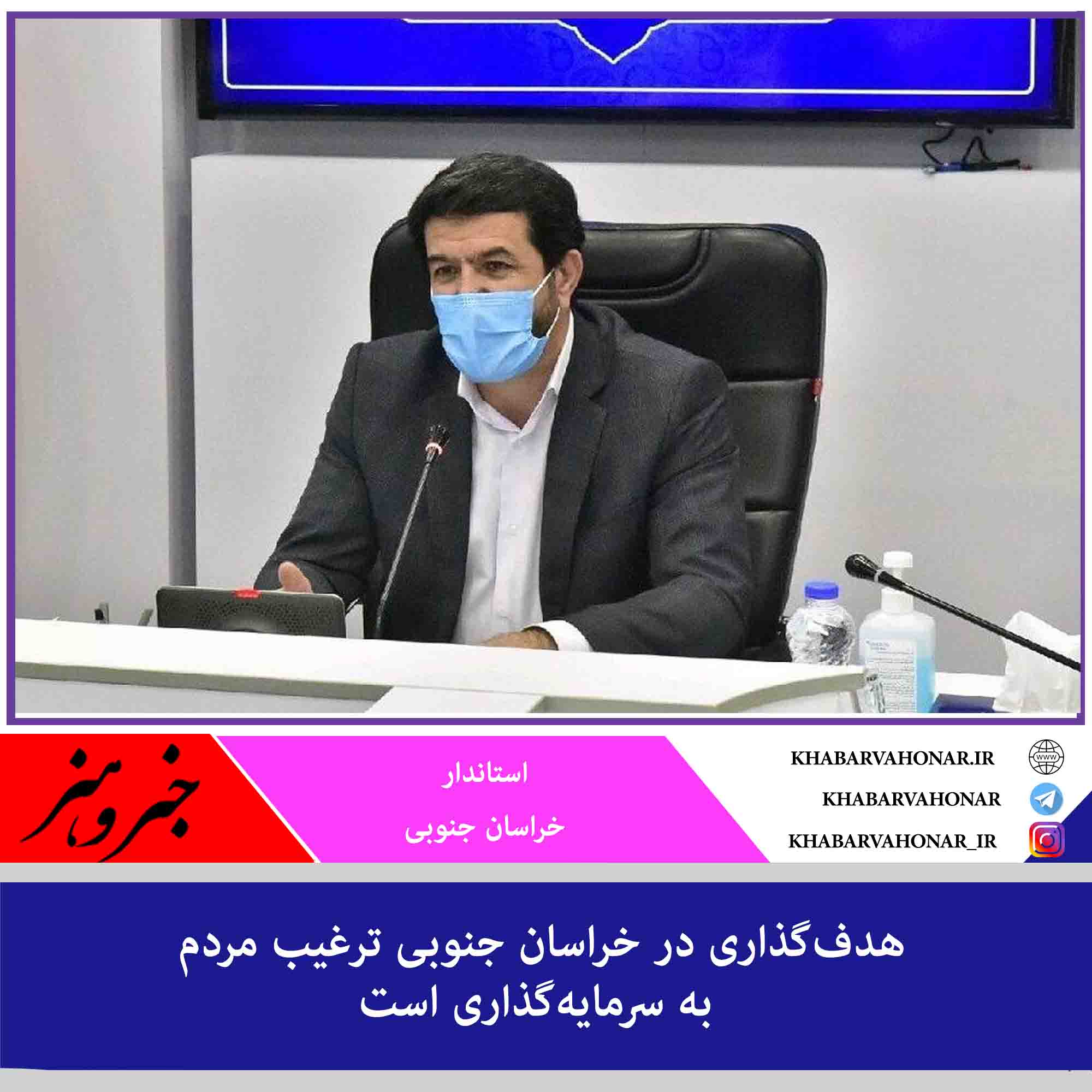 استاندار خراسان جنوبی گفت: یکی از اهداف ما در جذب سرمایهگذاران دارای اهلیت، ترغیب مردم استان به سرمایهگذاری و مشارکت در طرحهای اقتصادی است.