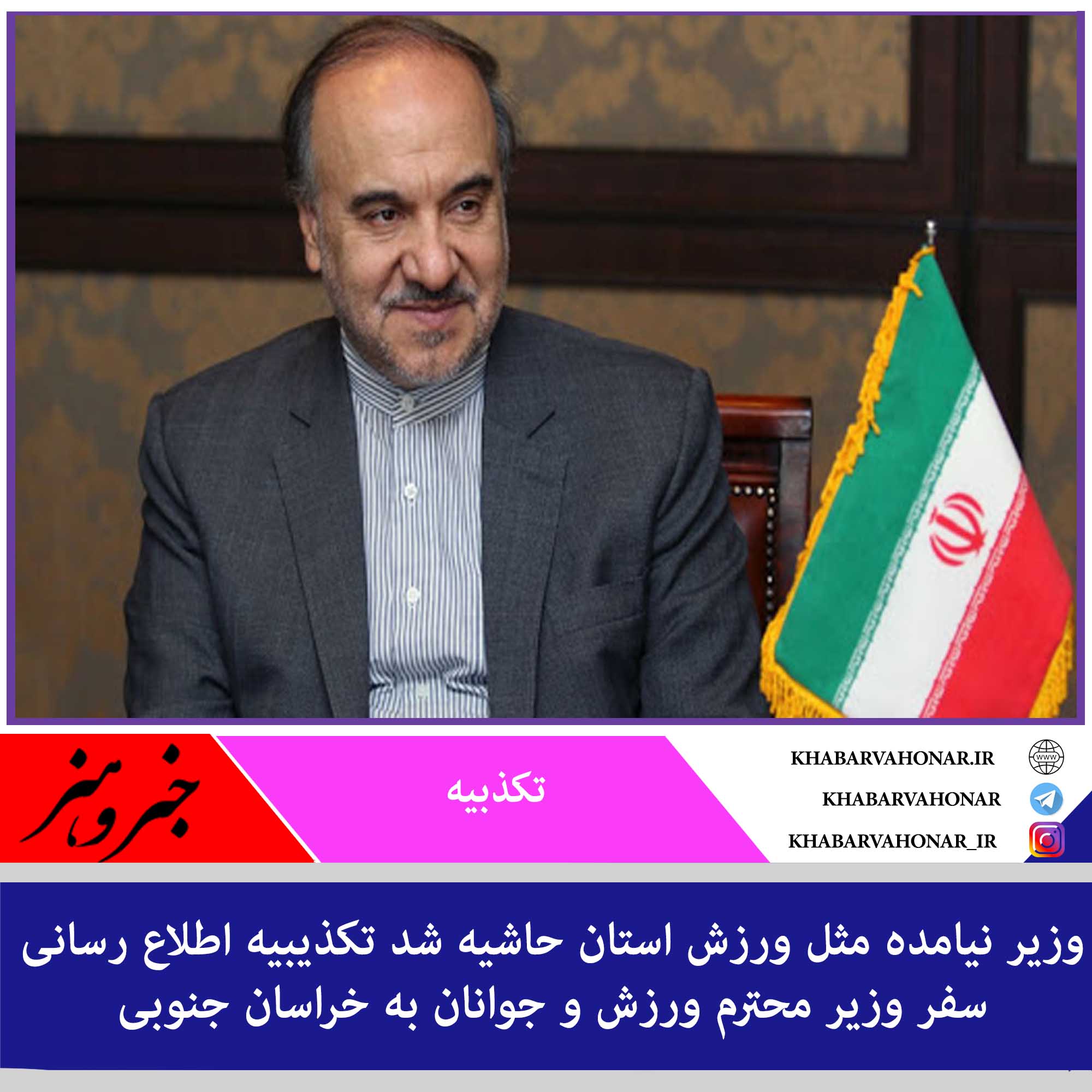 خبر منتشر شده در برخی رسانه ها و کانال های تلگرامی، مبنی بر سفر دکتر سلطانی فر وزیر ورزش و جوانان به خراسان جنوبی تکذیب شد.