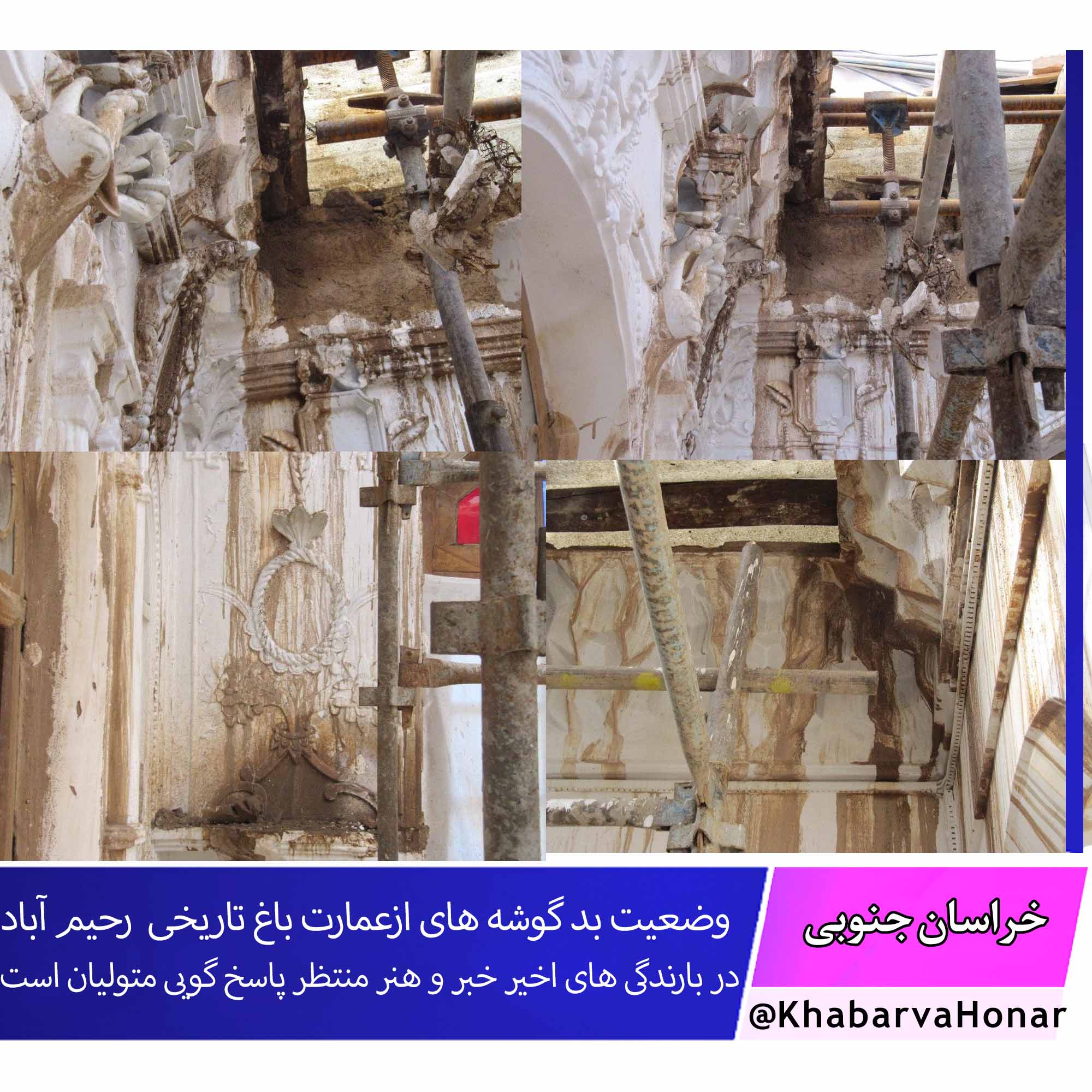 وضعیت بد گوشه های ازعمارت باغ تاریخی رحیم آباد در بارندگی های اخیر خبر و هنر منتظر پاسخ گویی متولیان است