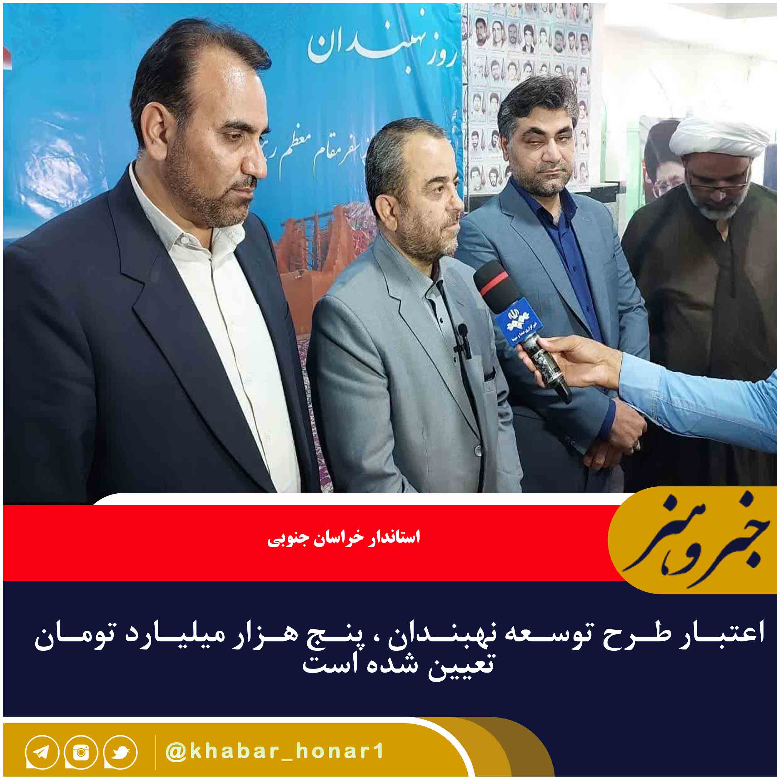?استاندار خراسان جنوبی تأکید کرد: اعتبار طرح توسعه نهبندان ، پنج هزار میلیارد تومان تعیین شده است.