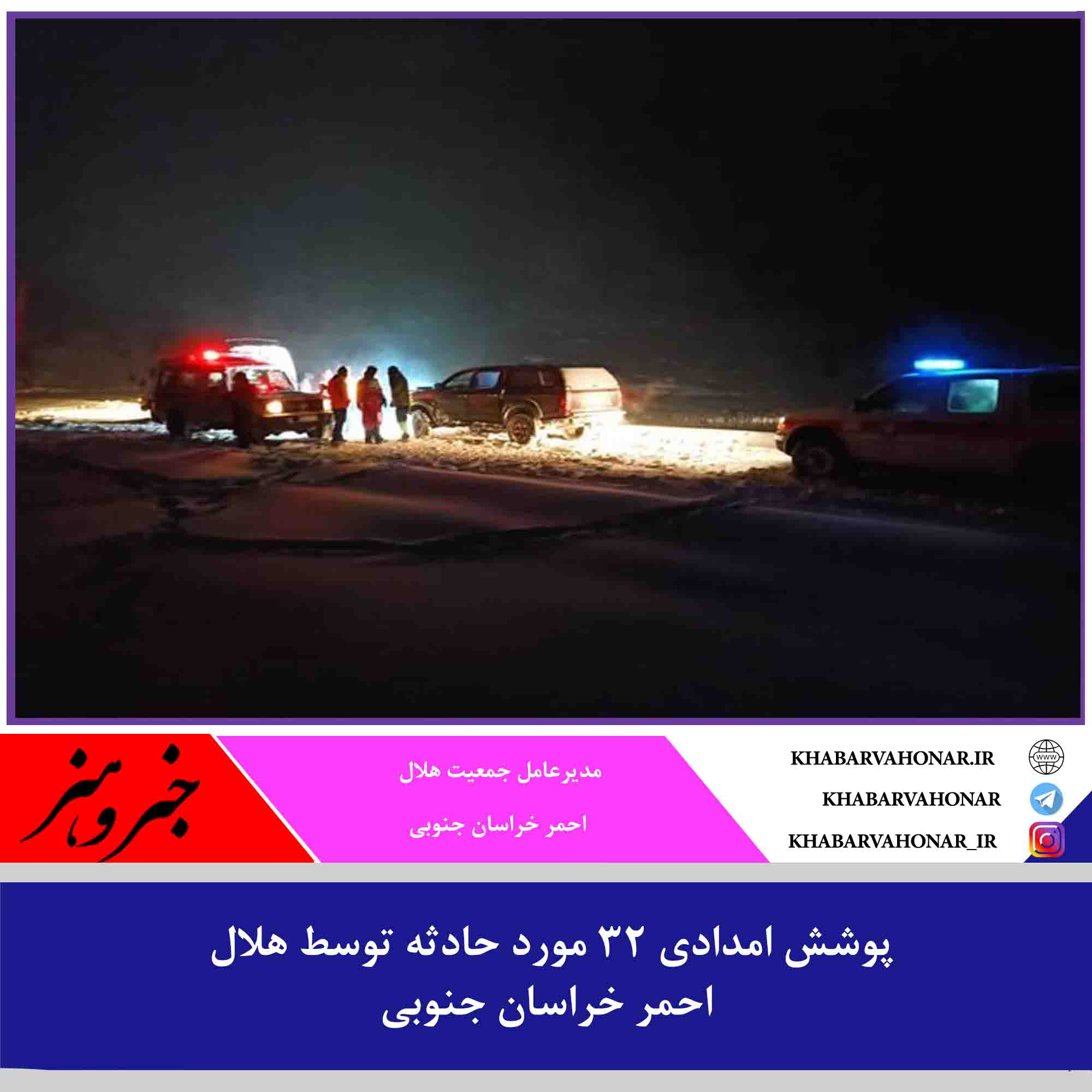 مدیرعامل جمعیت هلال احمر خراسان جنوبی از پوشش امدادی ۳۲ مورد حادثه از ۲۵ اسفند ماه سال گذشته تا کنون خبر داد.