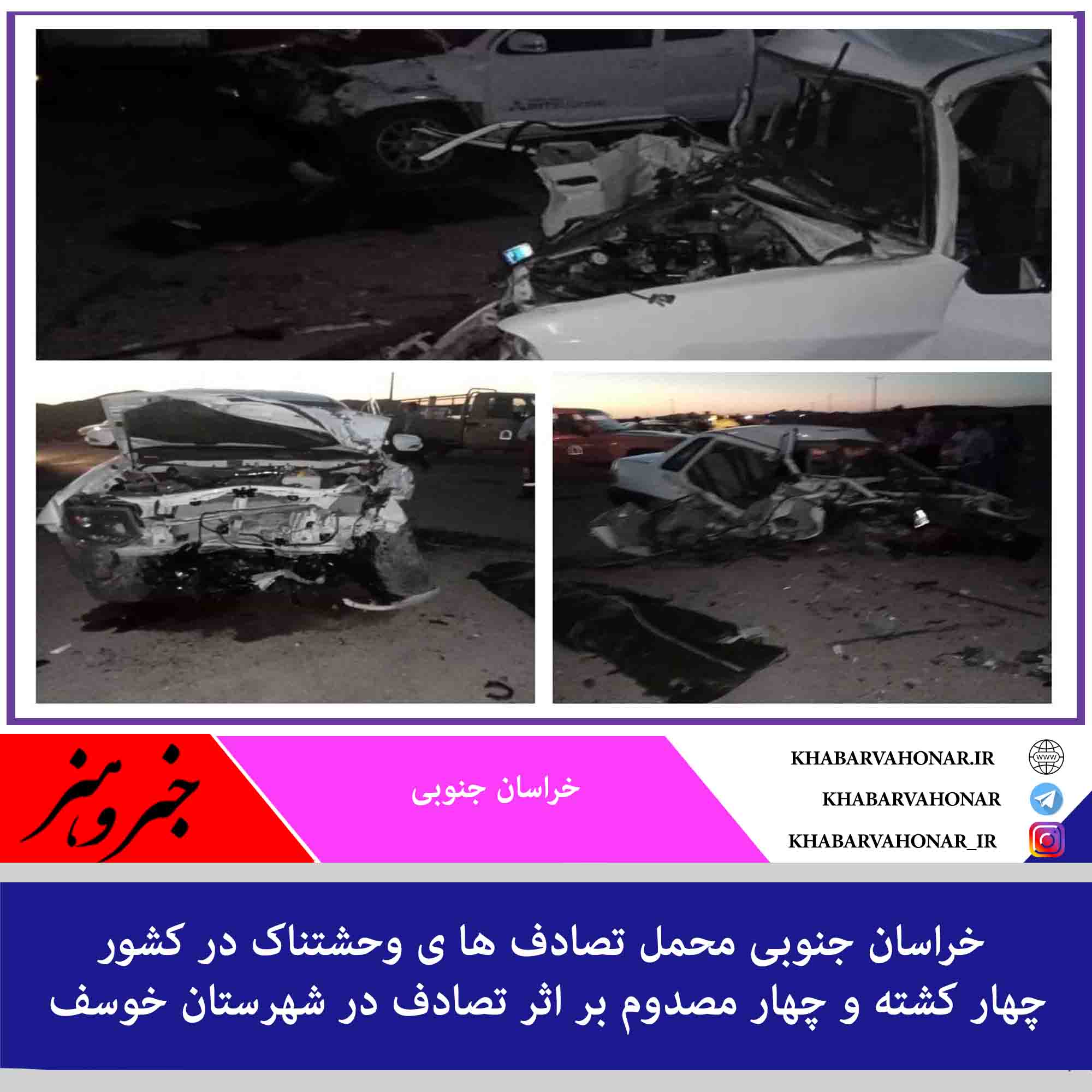 رییس پلیس راه خراسان جنوبی گفت: بر اثر برخورد وانت آمیکو با سواری پراید در کیلومتر ۲۵ محور فرعی “خوسف به ماژان” چهار نفر کشته و چهار نفر مصدوم شدند.