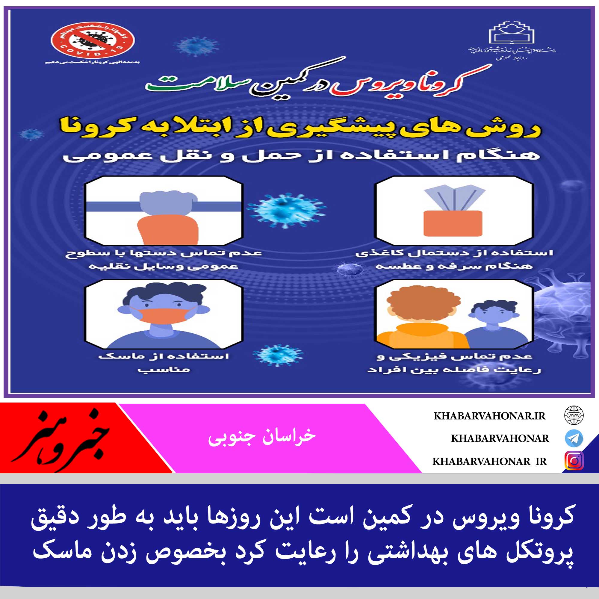 کرونا ویروس در کمین است این روزها باید به طور دقیق پروتکل های بهداشتی را رعایت کرد بخصوص زدن ماسک