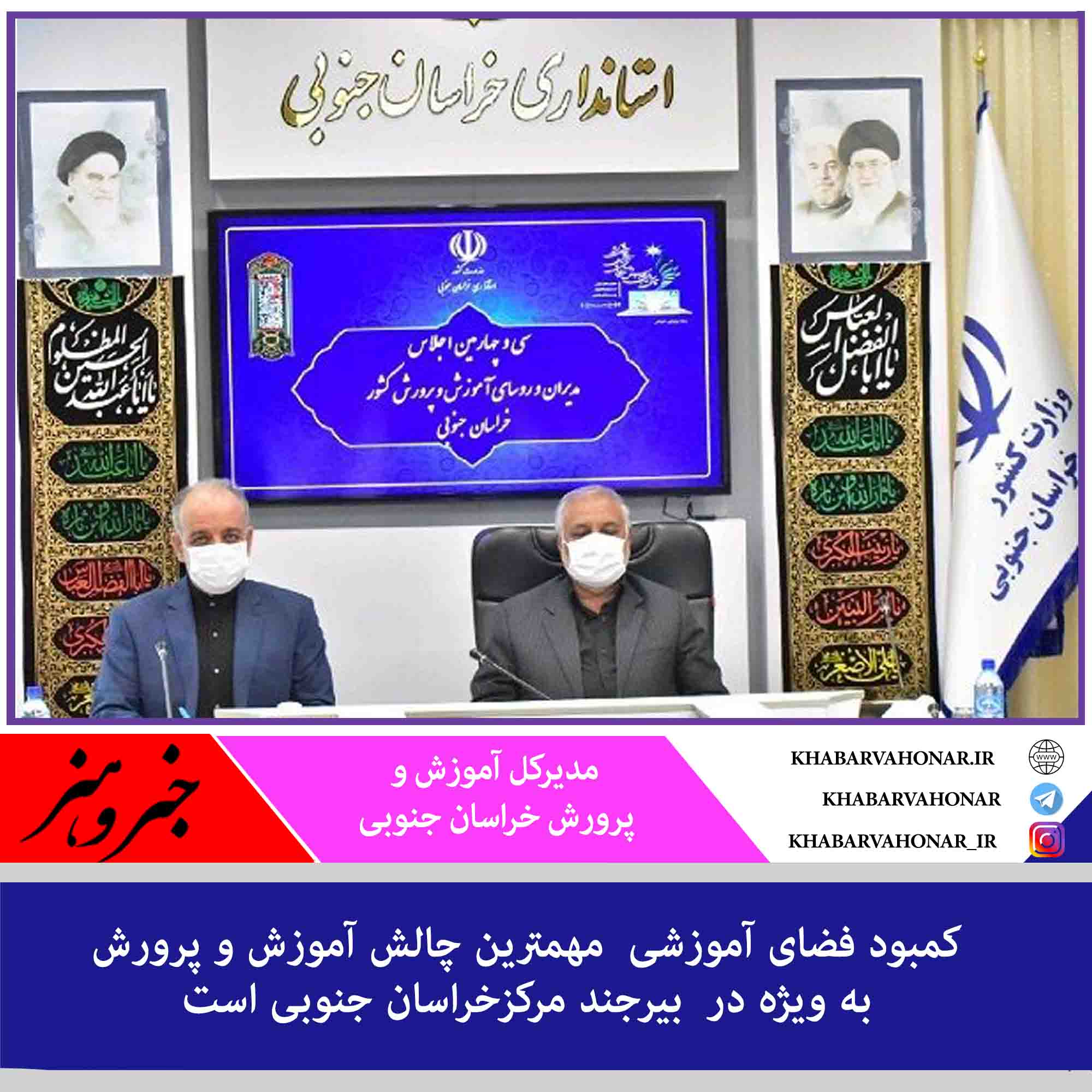 مدیرکل آموزش و پرورش خراسان جنوبی کمبود فضای آموزشی را مهمترین چالش آموزش و پرورش به ویژه در مرکز استان برشمرد و گفت: در حال حاضر ۴۱ مدرسه در خراسان جنوبی به صورت دوشیفت کار می‌کنند.