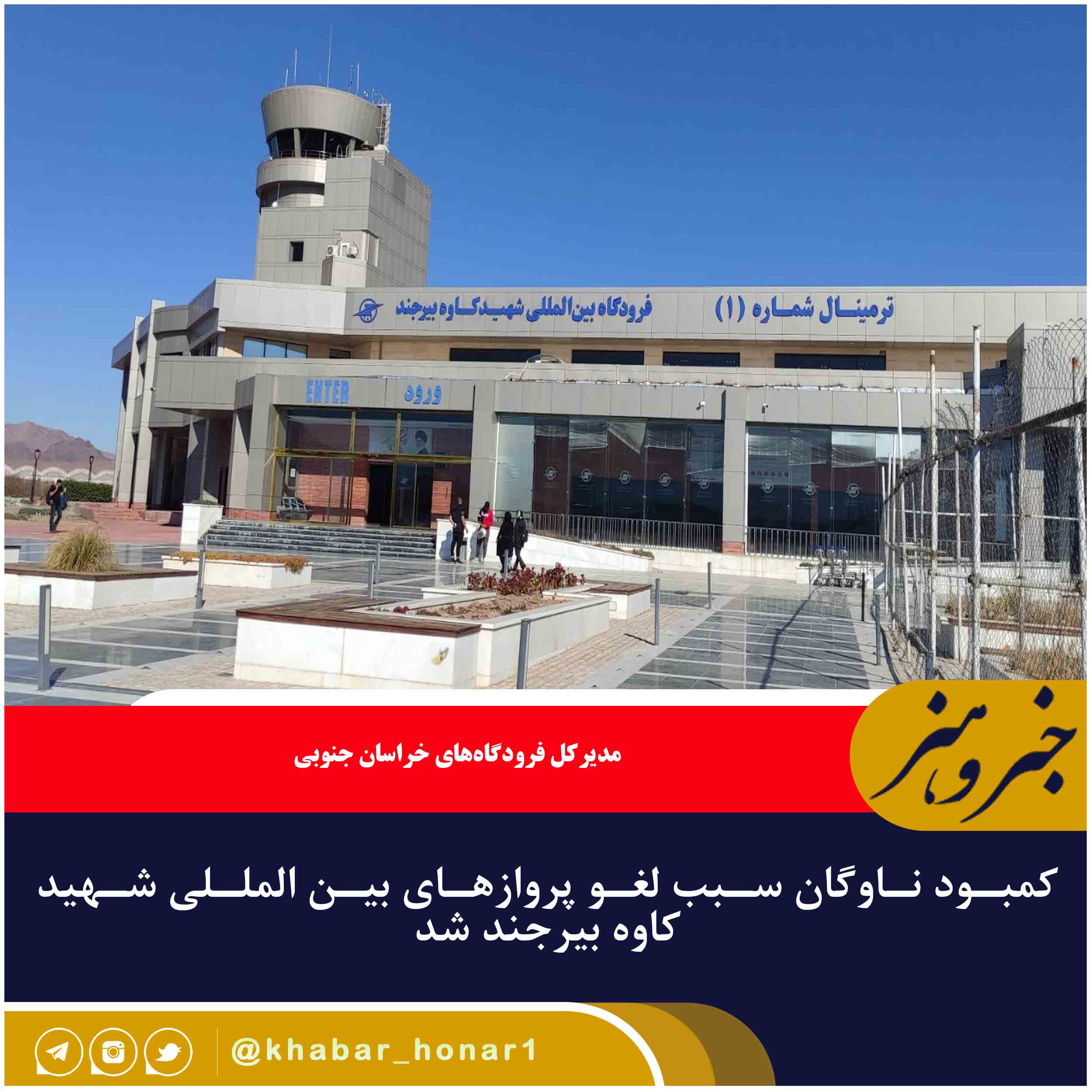 مدیرکل فرودگاههای خراسان جنوبی گفت: تمامی پروازهای دوشنبه تا پنجشنبه این هفته فرودگاه بین المللی شهید کاوه بیرجند به علت کمبود ناوگان هوایی لغو شد.