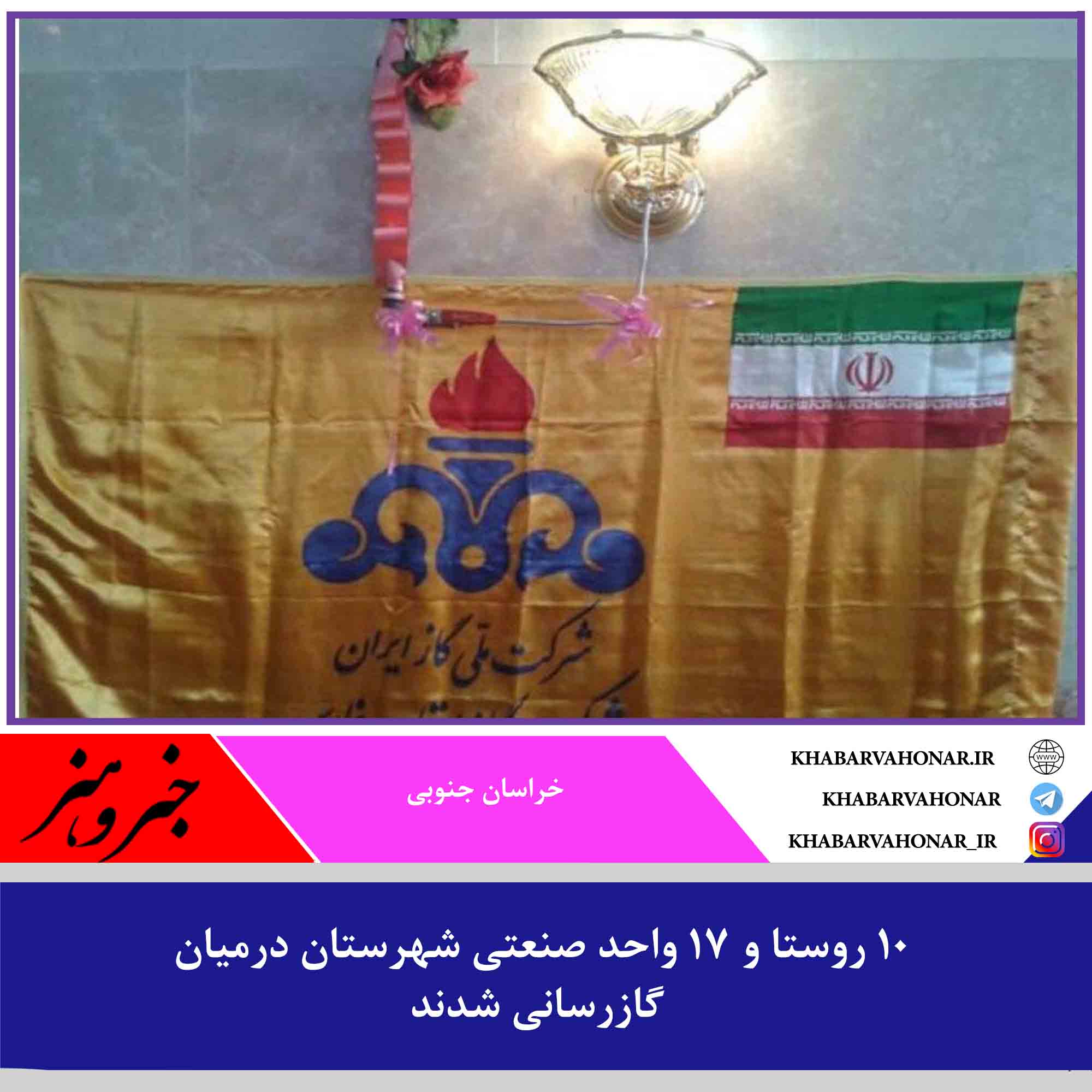 بهرهبرداری از گازرسانی به ۱۰ روستا و ۱۷ واحد صنعتی شهرستان درمیان در هفتمین روز دهه فجر با حضور معاون سیاسی، امنیتی و اجتماعی استاندار خراسان جنوبی آغاز شد.
