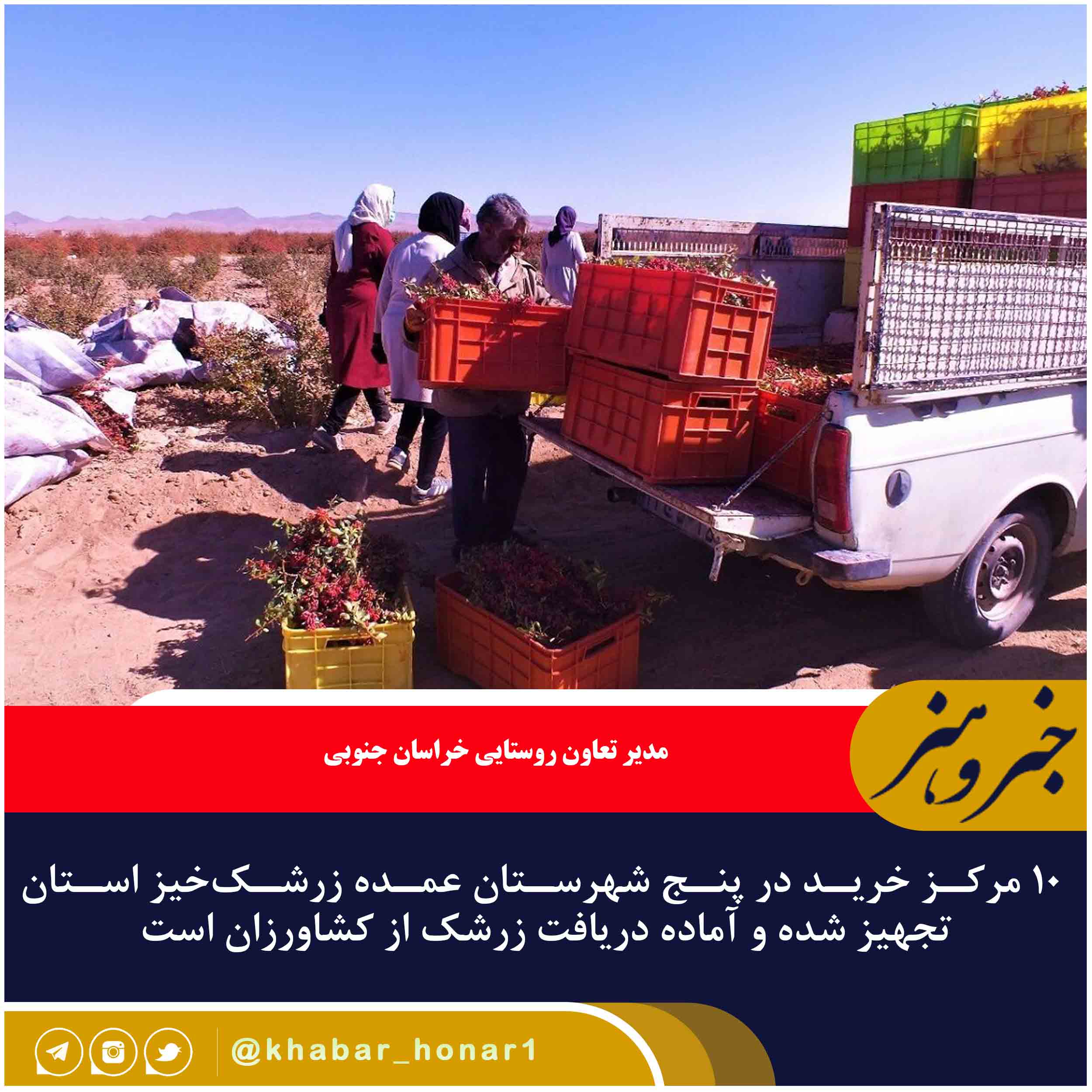 مدیر تعاون روستایی خراسان جنوبی گفت: ۱۰ مرکز خرید در پنج شهرستان عمده زرشکخیز استان تجهیز شده و آماده دریافت زرشک از کشاورزان است.