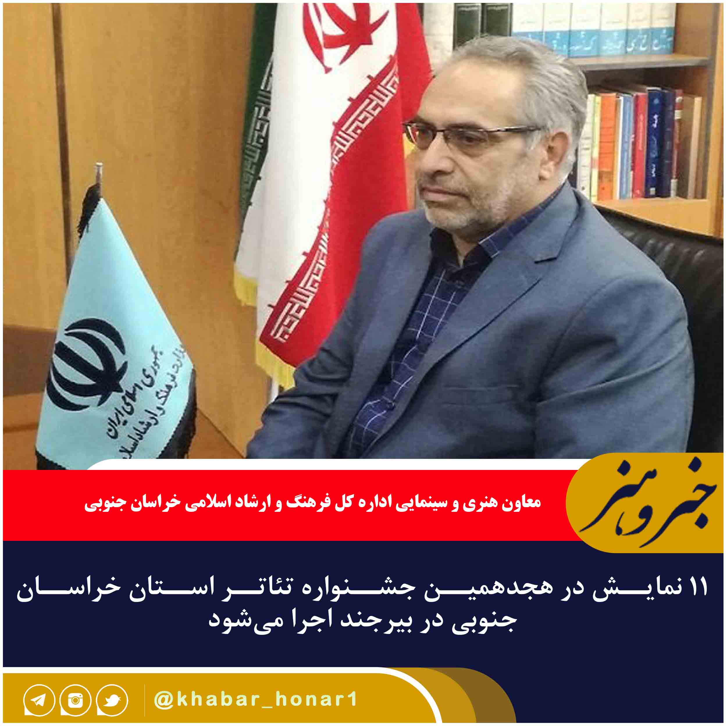 معاون هنری و سینمایی اداره کل فرهنگ و ارشاد اسلامی خراسان جنوبی از اجرای ۱۱ تئاتر در هجدهمین جشنواره تئاتر استان خبر داد.