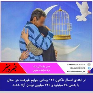 مدیر نمایندگی ستاد دیه خراسان جنوبی گفت: از ابتدای امسال تاکنون ۱۲۴ زندانی جرایم غیرعمد در استان با بدهی ۴۵ میلیارد و ۴۲۴ میلیون تومان آزاد شدند.