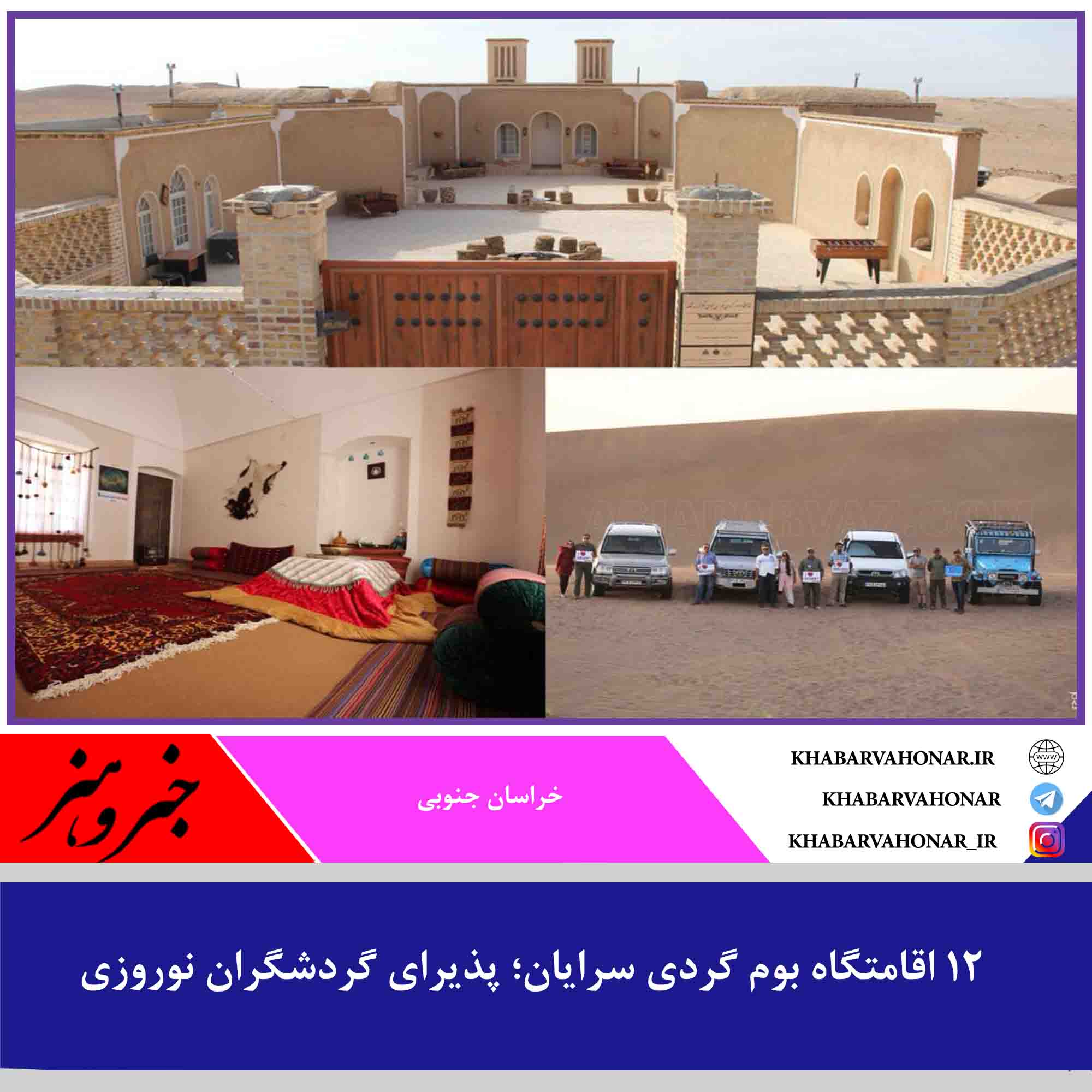 مسئول میراث فرهنگی، گردشگری و صنایع دستی سرایان اظهار کرد: ۱۲ اقامتگاه بوم گردی با ظرفیت بیش از ۴۵۰ نفر اقامت در شبانه روز ایام نوروز در شهرستان سرایان فعال و پذیرای مسافران و گردشگران نوروزی خواهند بود.