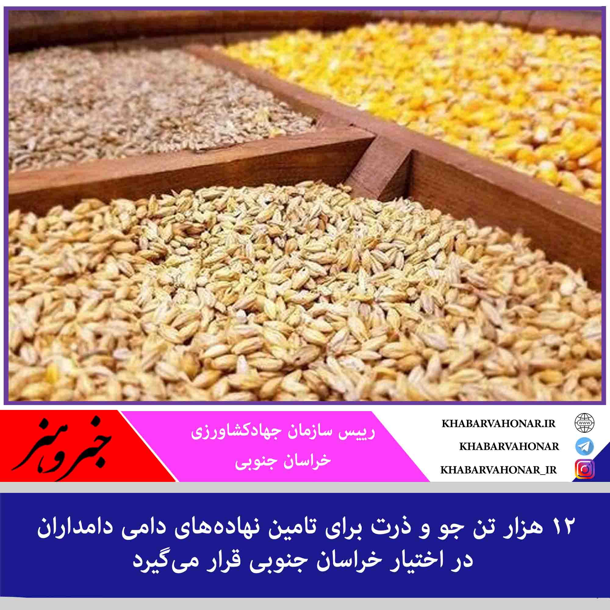 رییس سازمان جهادکشاورزی خراسان جنوبی اظهار کرد: با پیگیری این سازمان و نمایندگان مردم خراسان جنوبی در مجلس شورای اسلامی ۱۲ هزار تن جو و ذرت برای تامین نهادههای دامی دامداران در اختیار استان قرار میگیرد.