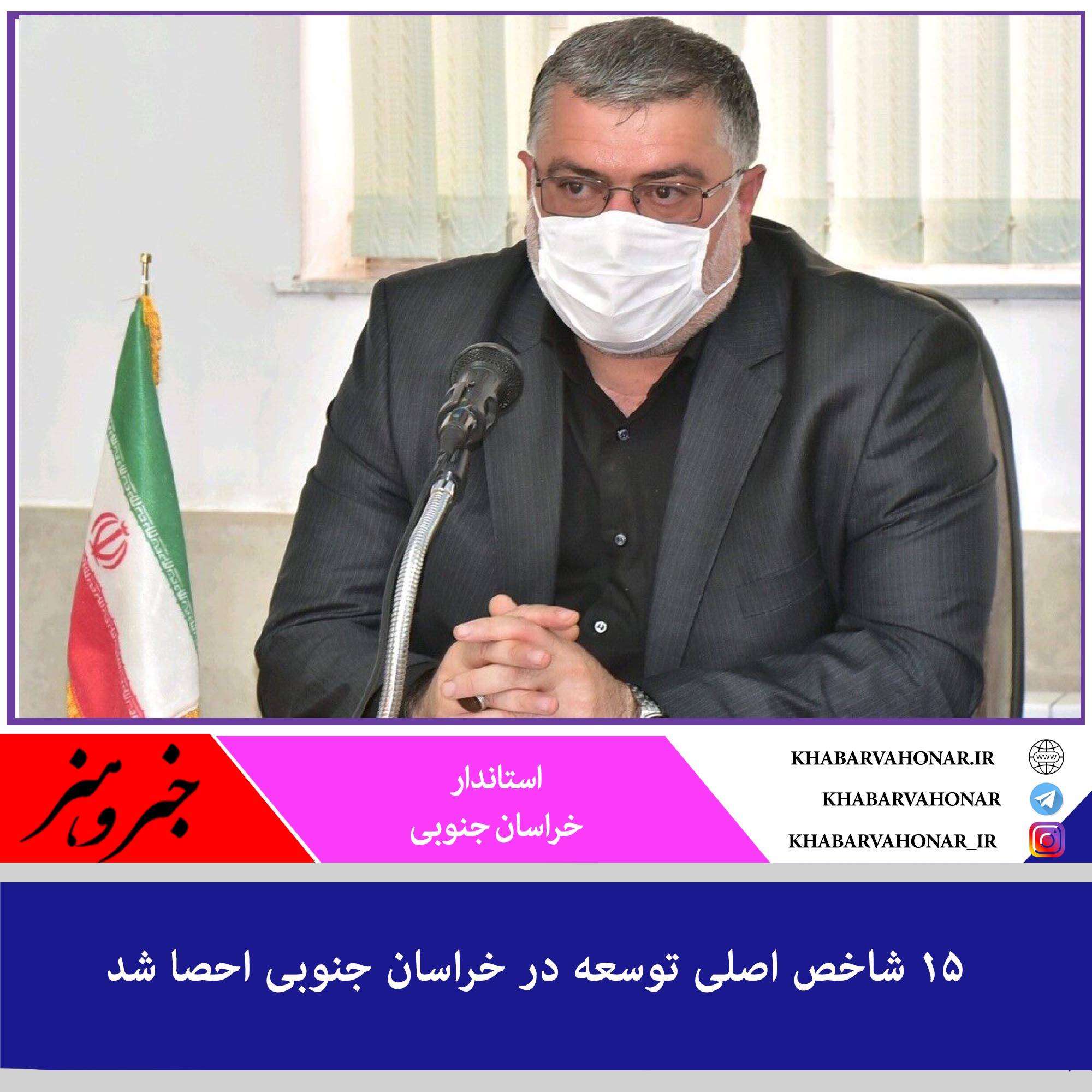 استاندار خراسان جنوبی گفت: ۱۵ شاخص اصلی توسعه را احصا کردیم و تلاش بر این است که در تمامی این موارد از میانگین کشوری عقب نمانیم.