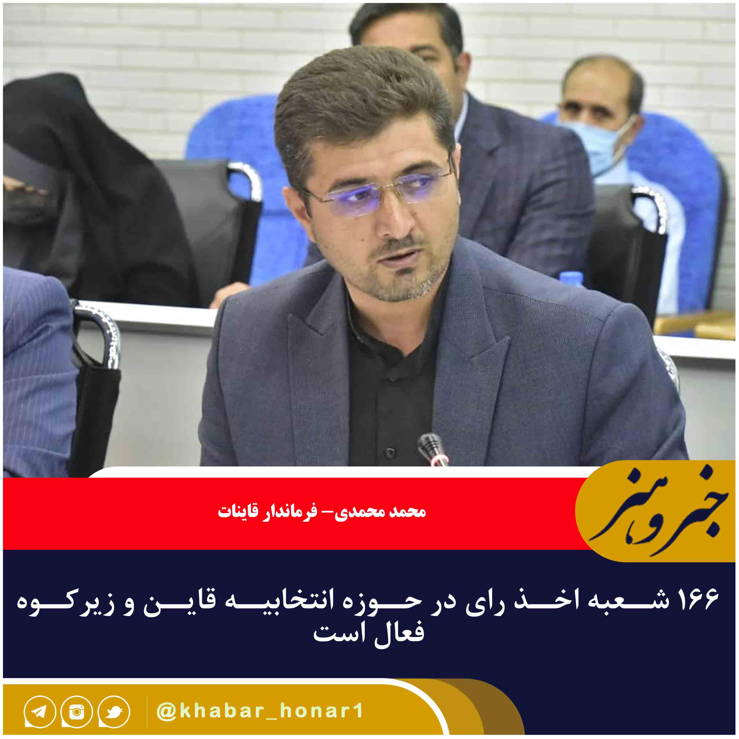 محمدی گفت: ۱۶۶ شعبه اخذ رای در حوزه انتخابیه قاین و زیرکوه فعال است.