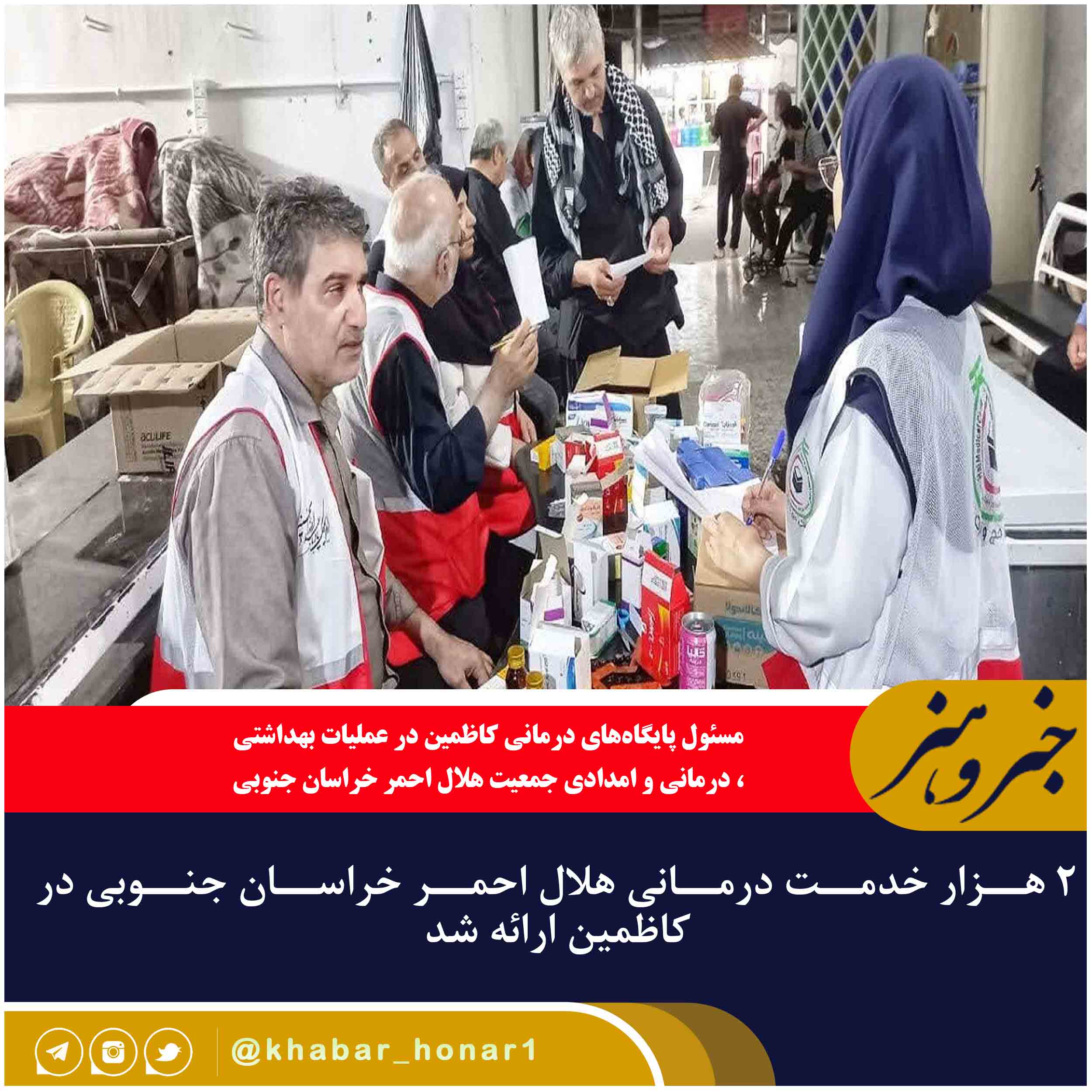 مسئول پایگاههای درمانی کاظمین در عملیات بهداشتی، درمانی و امدادی جمعیت هلال احمر خراسان جنوبی گفت: از ابتدای استقرار نیروهای هلال احمر استان بیش از ۷۲ هزار خدمت پزشکی و پیراپزشکی در درمانگاههای هلال احمر مستقر در شهر کاظمین به زائران اربعین ارائه شده است.