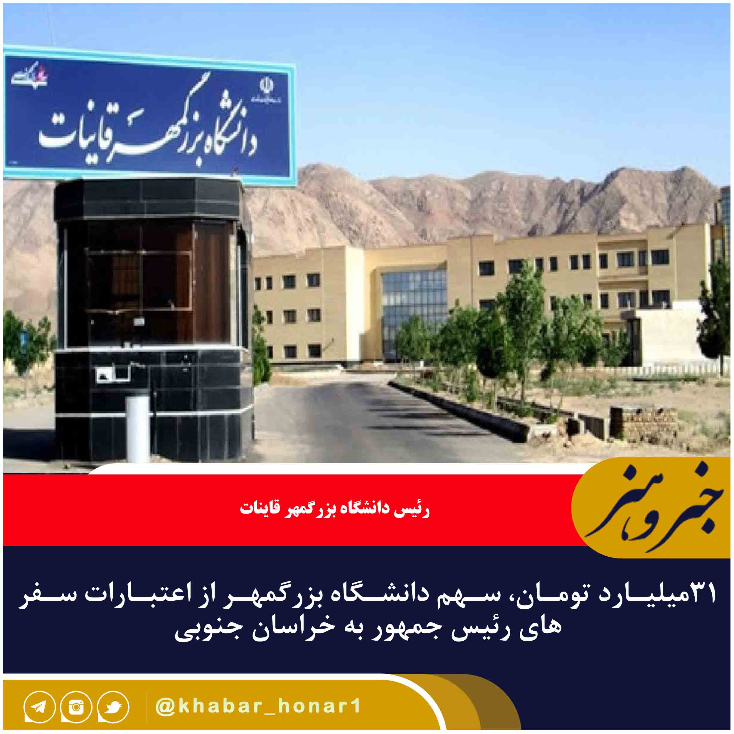 رئیس دانشگاه بزرگمهر قاینات گفت: در ۲ سفر رئیس جمهور به خراسان جنوبی، مجموعا ۳۱ میلیارد تومان اعتبار به این دانشگاه اختصاص یافته است.