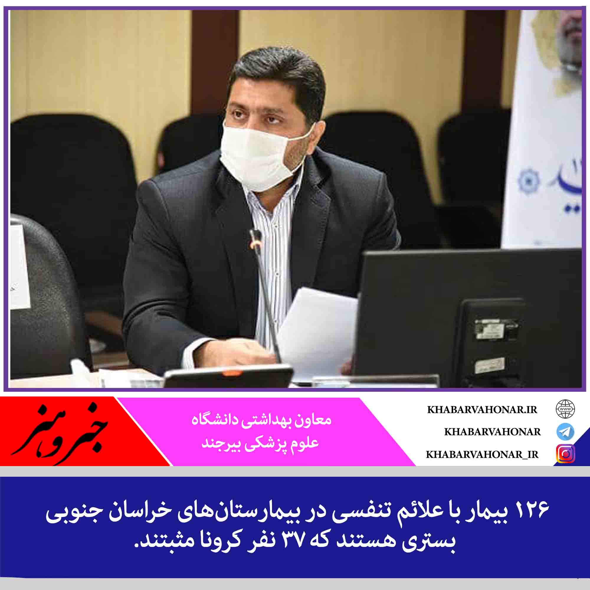 عاون بهداشتی دانشگاه علوم پزشکی بیرجند گفت: در حال حاضر ۱۲۶ بیمار با علائم تنفسی در بیمارستانهای خراسان جنوبی بستری هستند که ۳۷ نفر کرونا مثبتند.