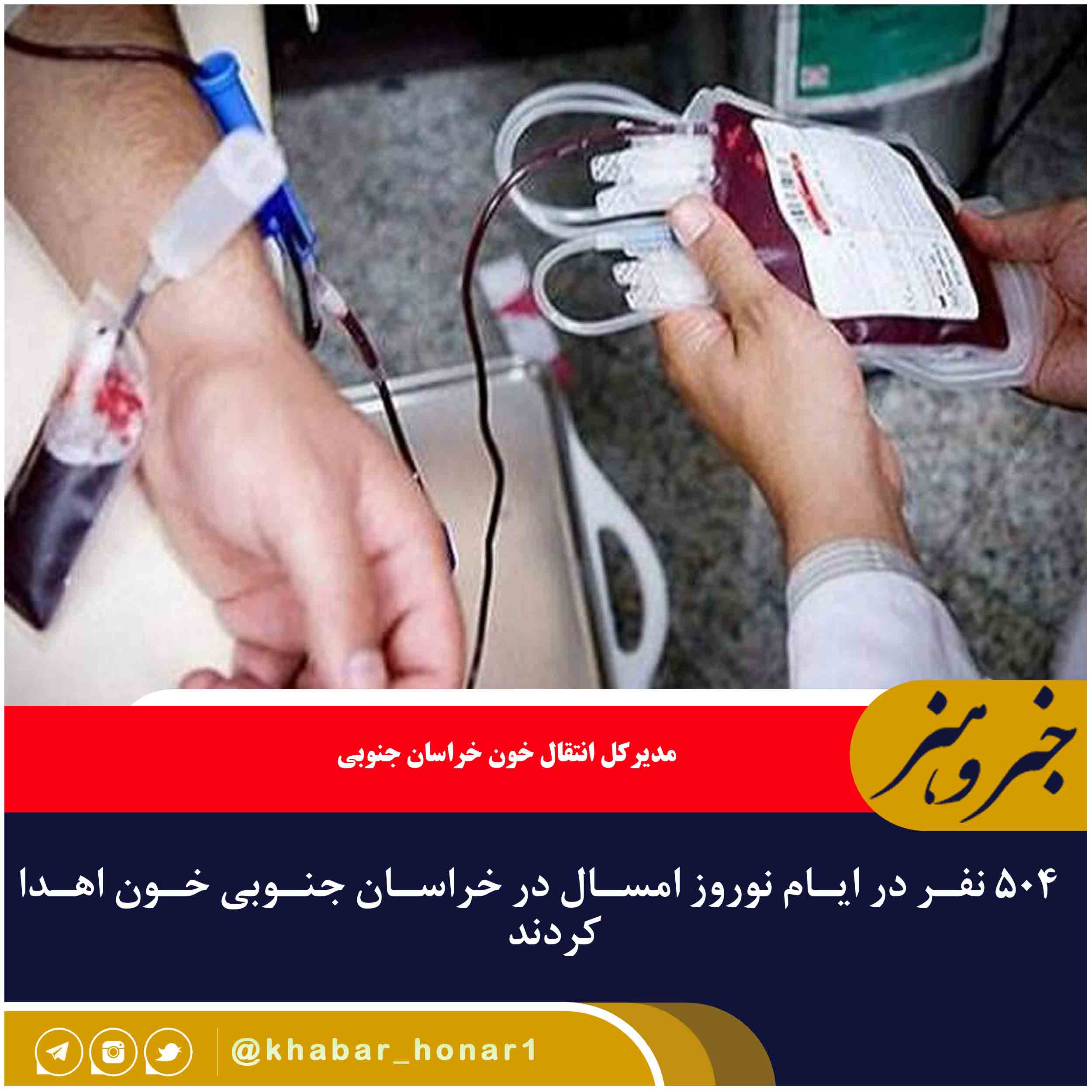 مدیرکل انتقال خون خراسان جنوبی با بیان اینکه آمار اهدای خون در نوروز امسال نسبت به مدت مشابه سال قبل کاهش داشته است گفت: ۱۴ روز نخست سال گذشته ۷۶۸ نفر برای اهدای خون مراجعه کردند و ۶۶۱ نفر موفق به اهدای خون شدند که از این تعداد ۶۱۷ نفر مرد و ۴۴ نفر زن بودند.