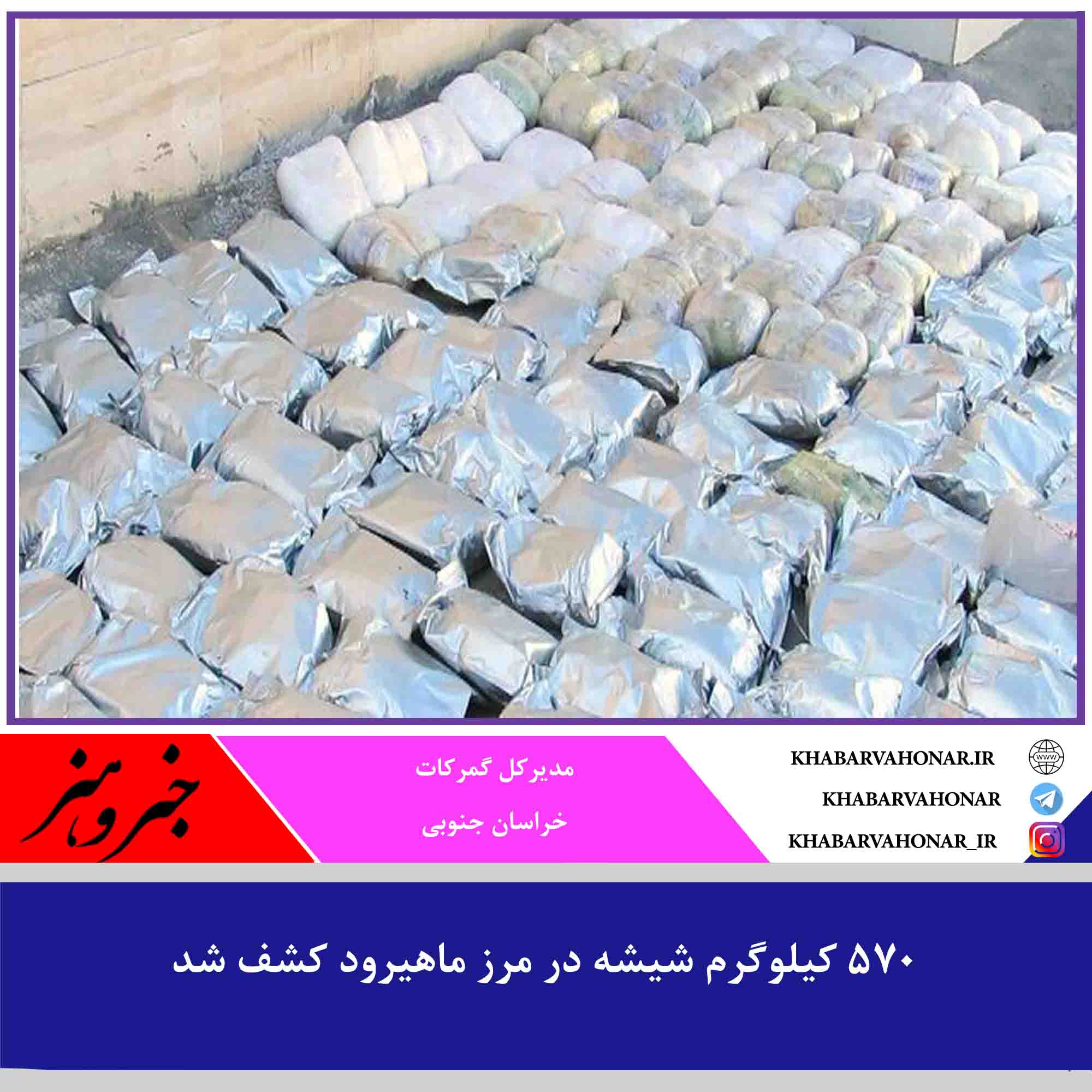 مدیرکل گمرکات خراسان جنوبی گفت: با هشداردهی دستگاههای ذیربط و اتخاذ تدابیر لازم در مرز رسمی ماهیرود ۵۷۰ کیلوگرم مواد مخدر صنعتی از نوع شیشه کشف شد.